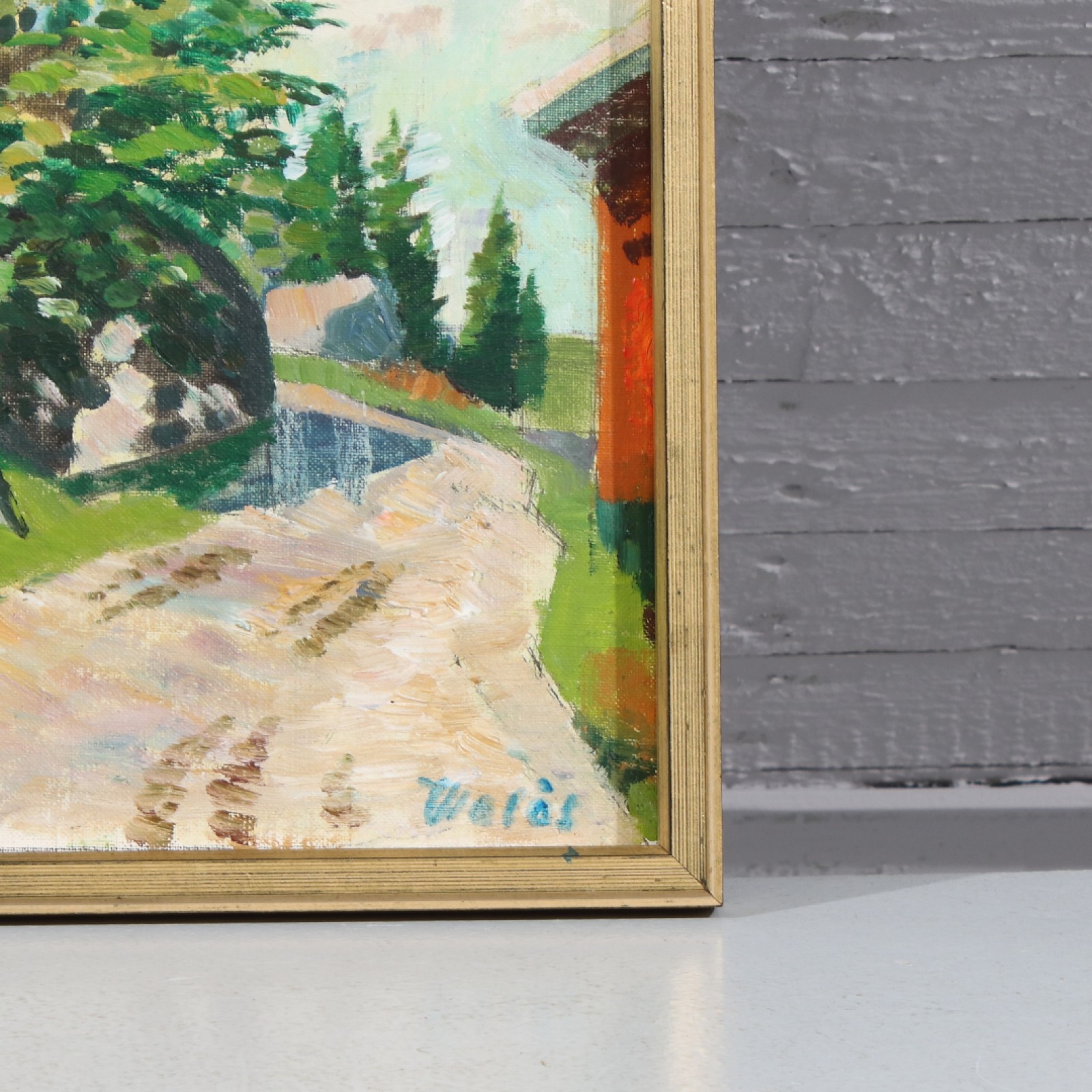 Olja på pannå, "Knutsbol, Degerfors", ram 36x49 cm, bild 32,5x45,5 cm. (vån3)