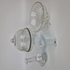 Tårtfat med lock, glasGlasskål på fötterKaraff, glasLjuslykta, "Olympia", Lars Hellsten, Orrefors, höjd 12,5 cmGlasskål, blått glasTacoskålar, porslin, 4 stFigurin, porslinVäggbonadDukar, 2 stBordstabletter, ribbade, 9 st