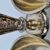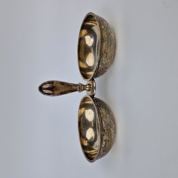 Försilvrad metall. Dubbla skålar med ett centralt handtag. 1900-talets början.