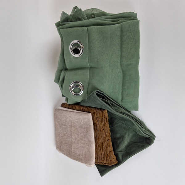 Gardiner med öljetter, 4 längder, kuddfodral, 3 st