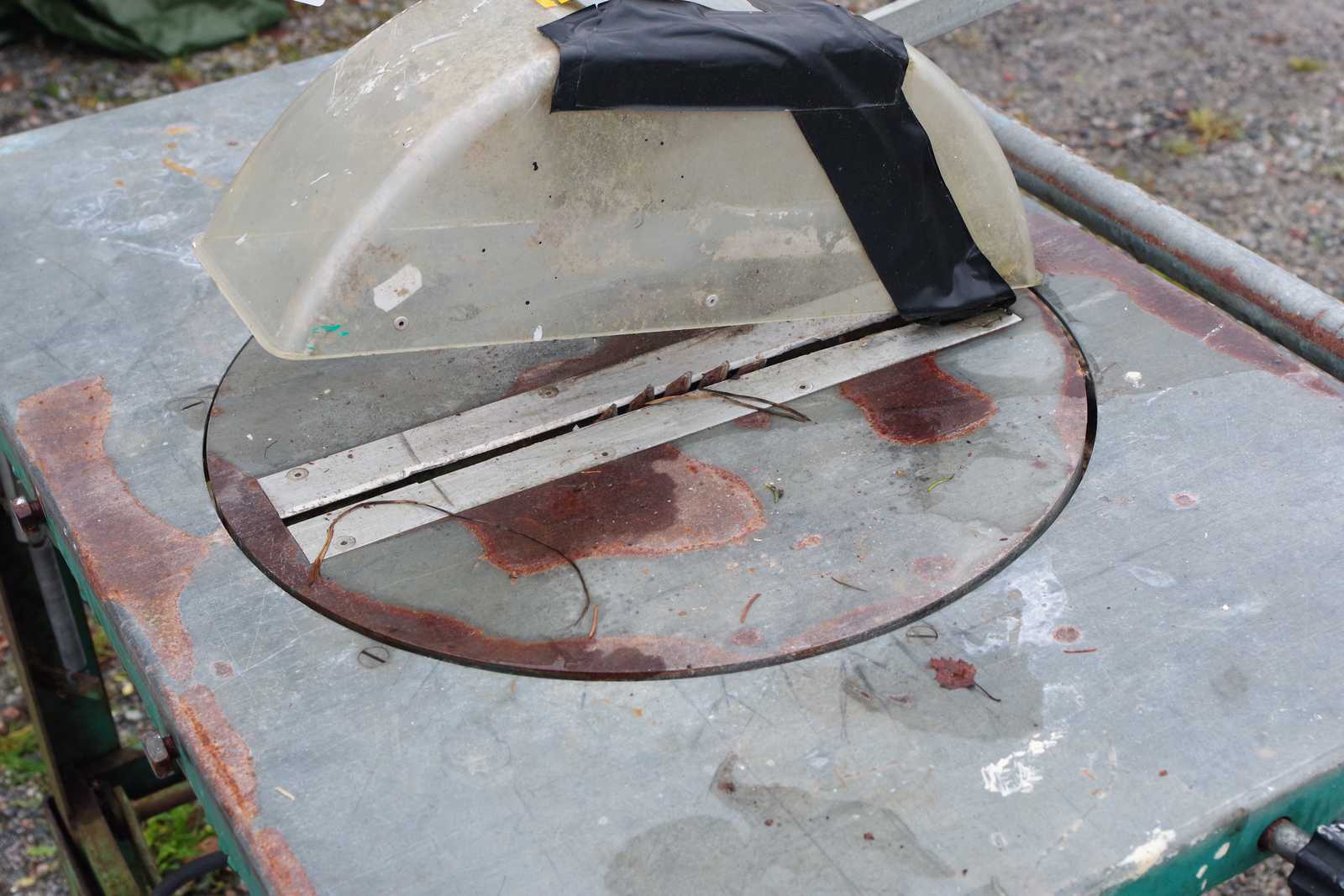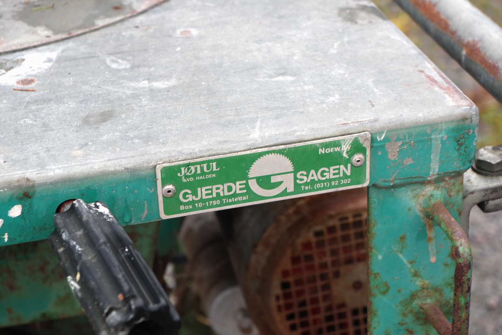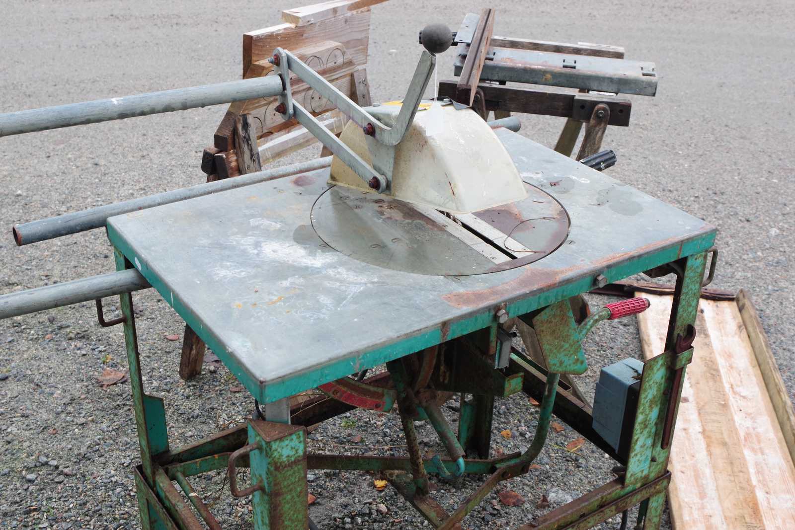 Bilder BYGGSÅG Gjerdesågen, med hembyggda sågbord, fungerar.