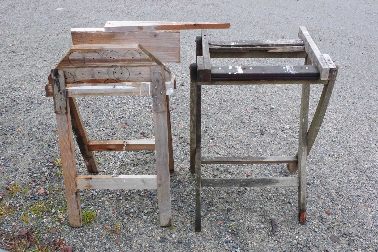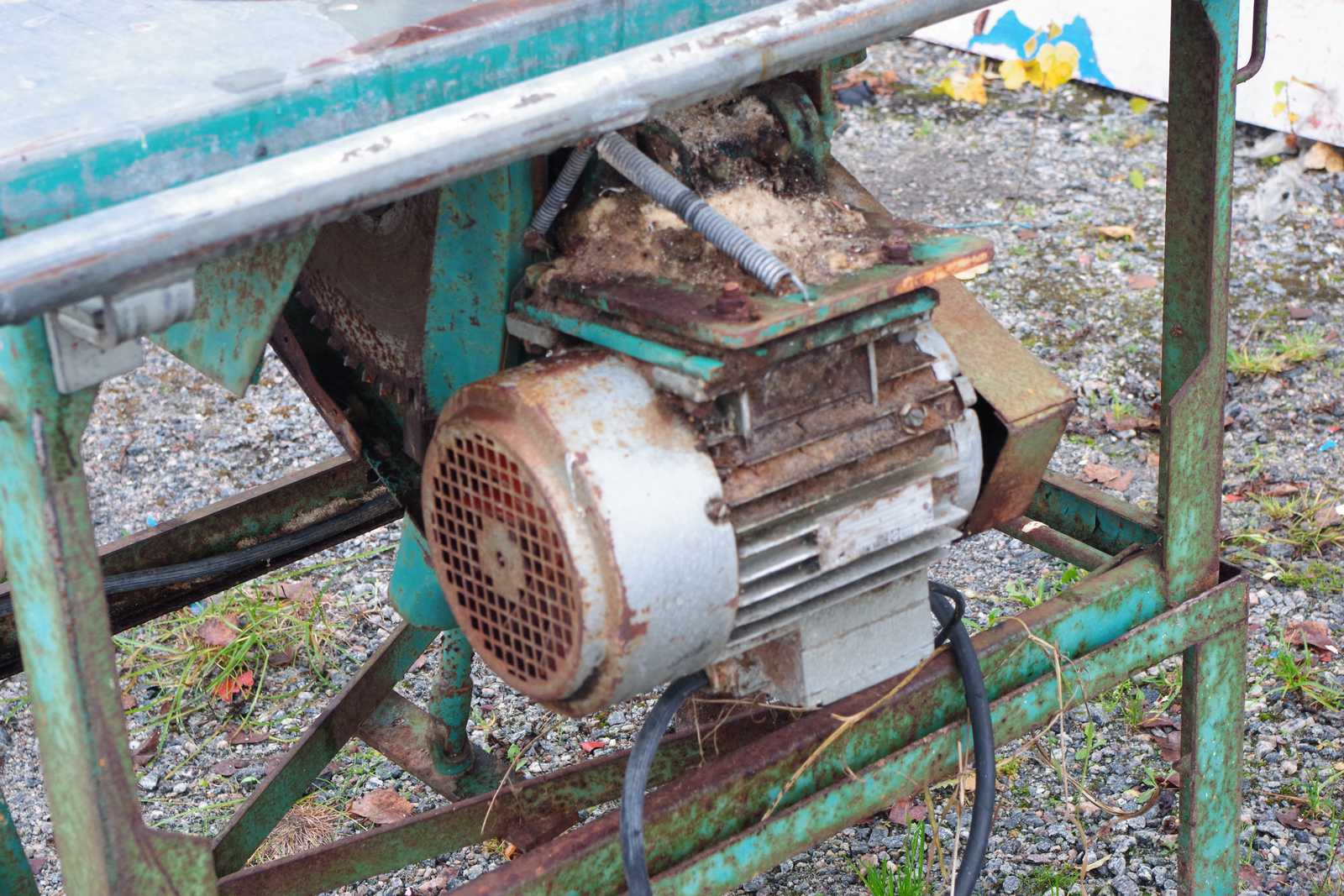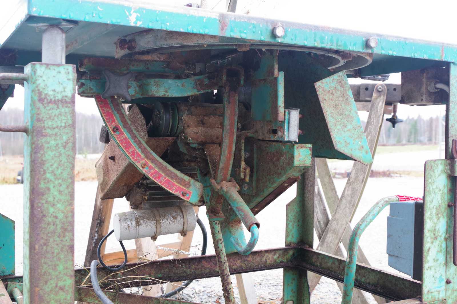 Bilder BYGGSÅG Gjerdesågen, med hembyggda sågbord, fungerar.