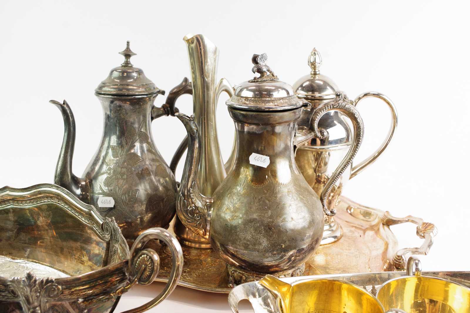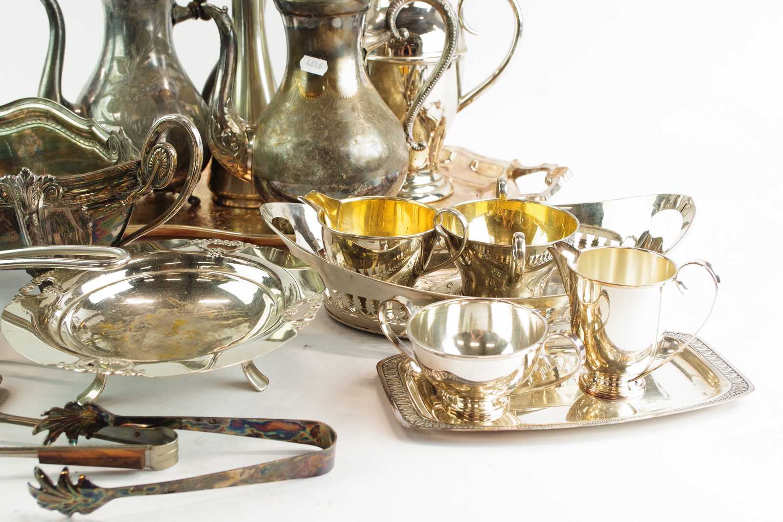 Bilder DIVERSE vitmetall, skålar, vas, kannor, brickor mm