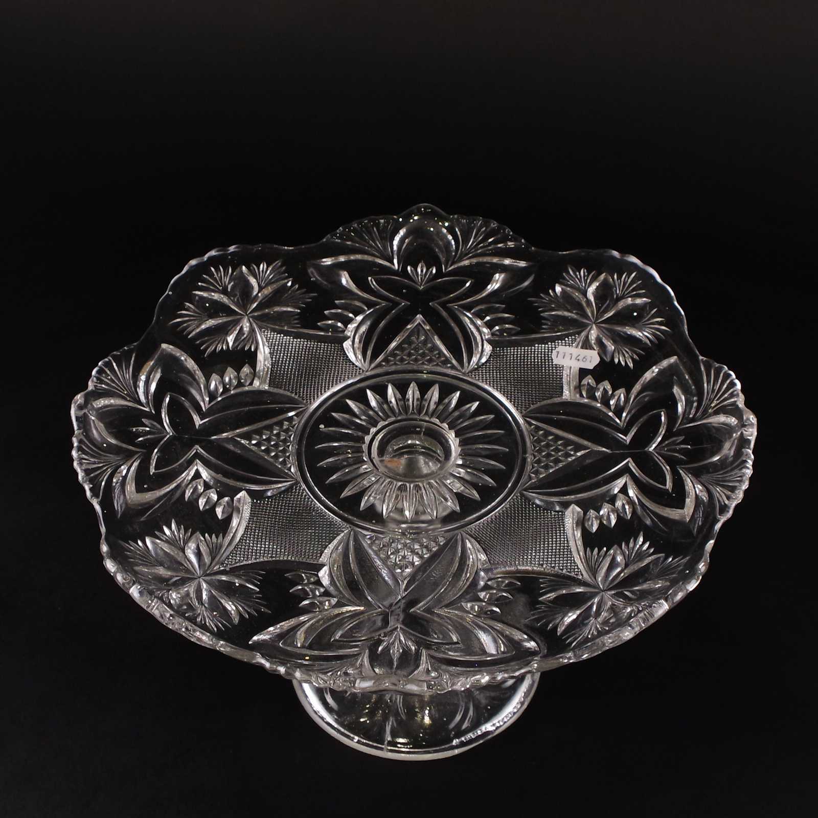 FAT på fot, äldre, pressglas. H:17cm D:29cm.