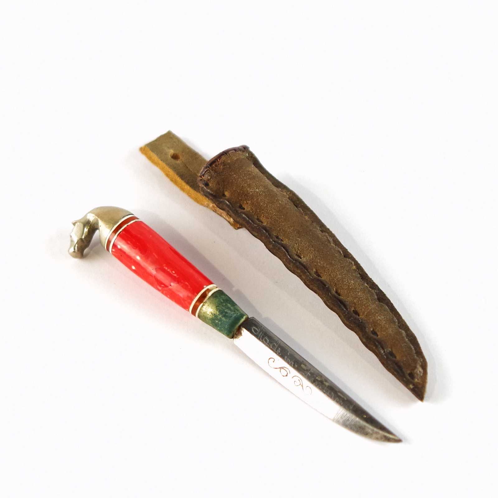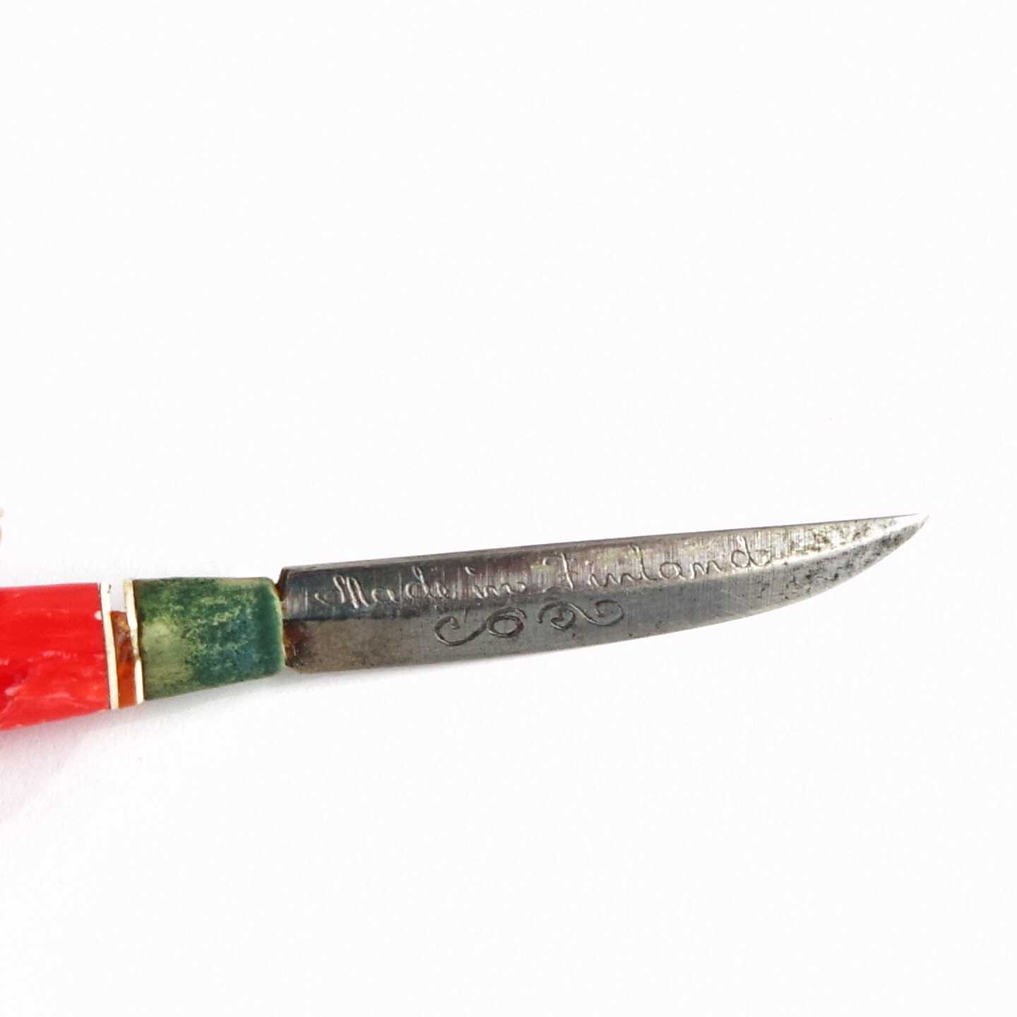 MINIATYRKNIV Finland. L:9cm. (liten bit av dekor på knivskaft saknas)