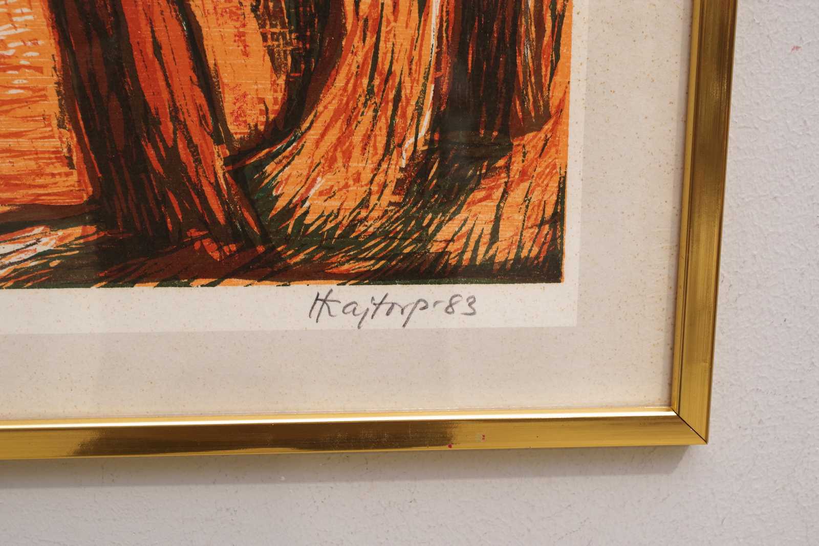 TAVLA, Hans Kajtorp, träsnitt, signerad samt numrerad. 62x47cm rammått