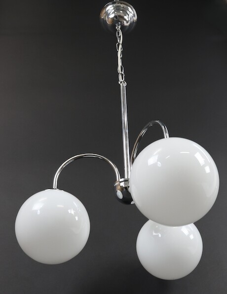 Taklampa, kromad stomme med 3 st glaskupor, Ikea, 1900-talets slut, H=50