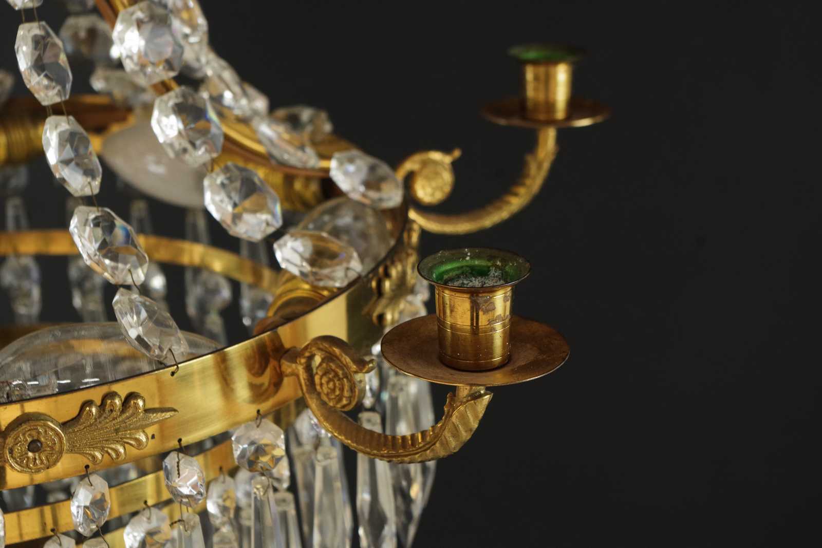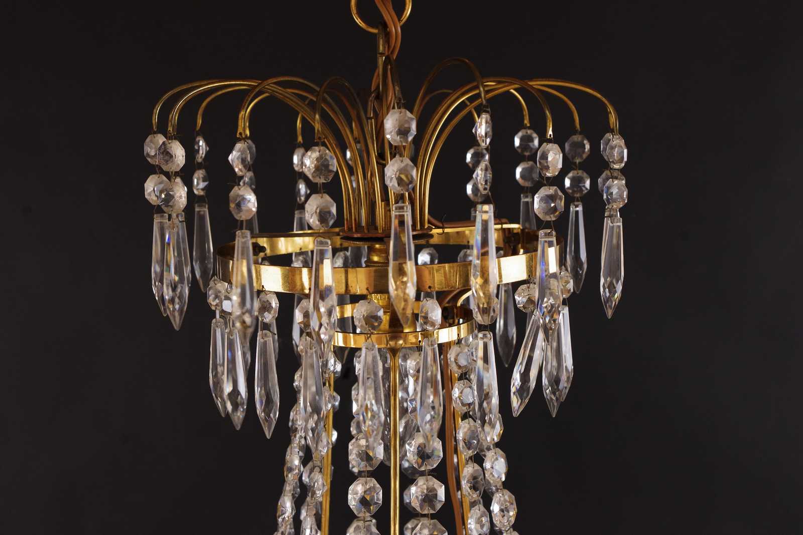 Bilder TAKKRONA behängd med prismor i glas, 1900 tal. D:50cm H:75cm