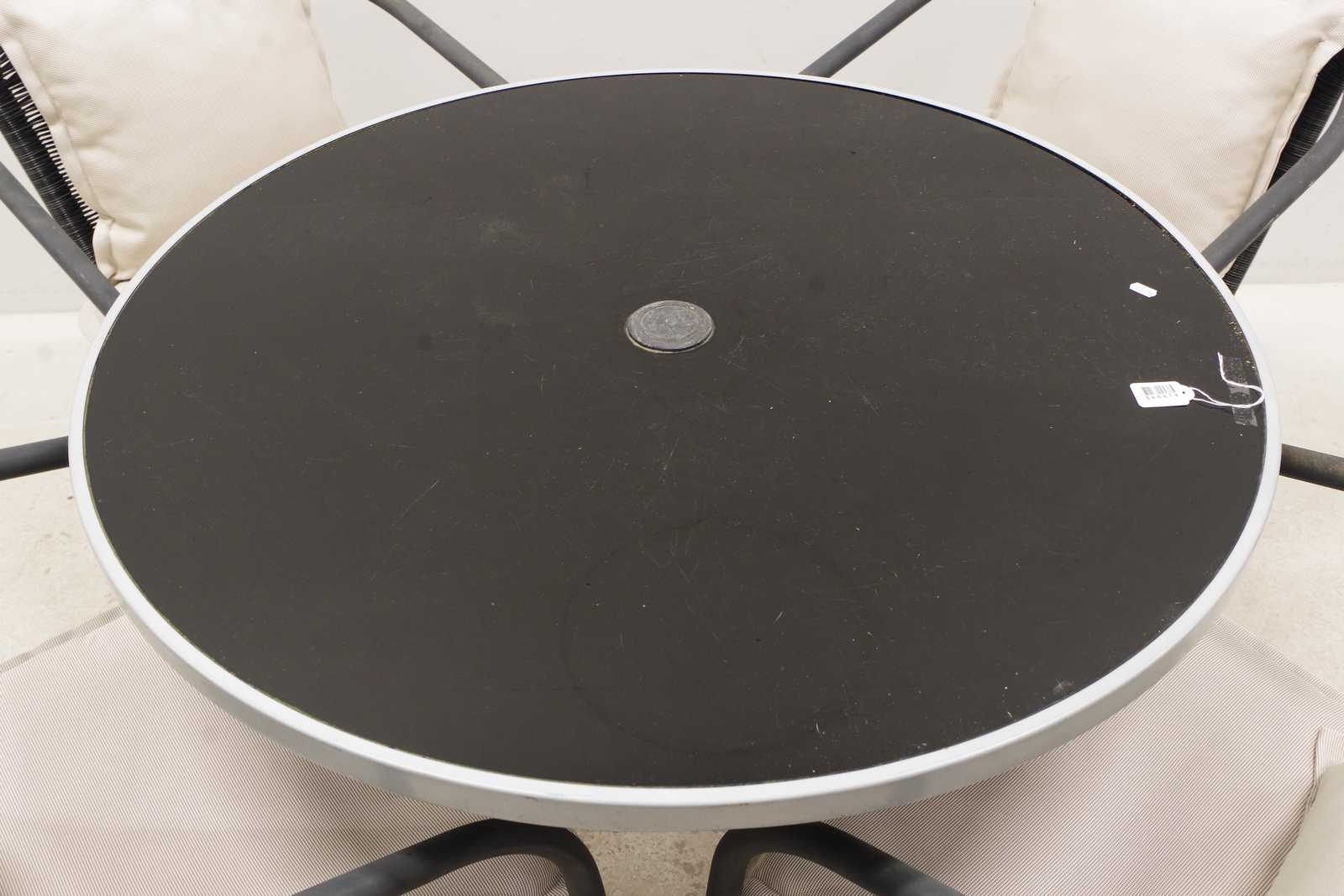 Bilder TRÄDGÅRDSGRUPP, stolar 4st & bord, H: 72cm D: 90cm (använt skick)