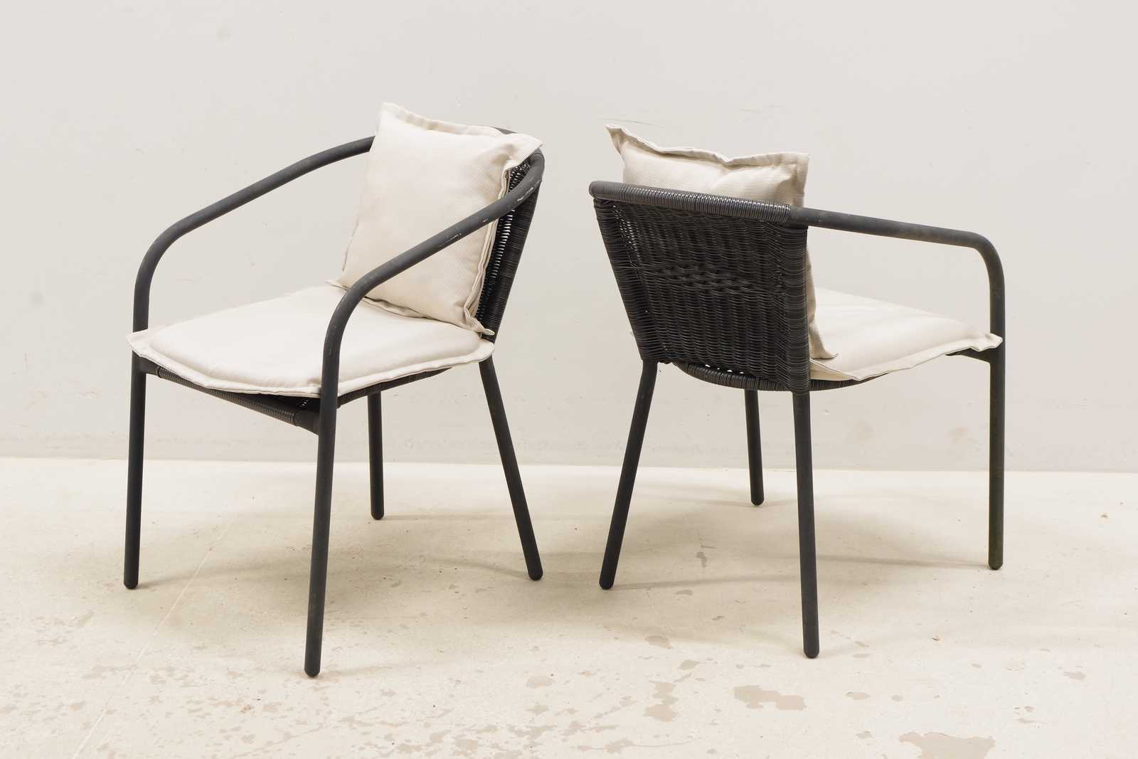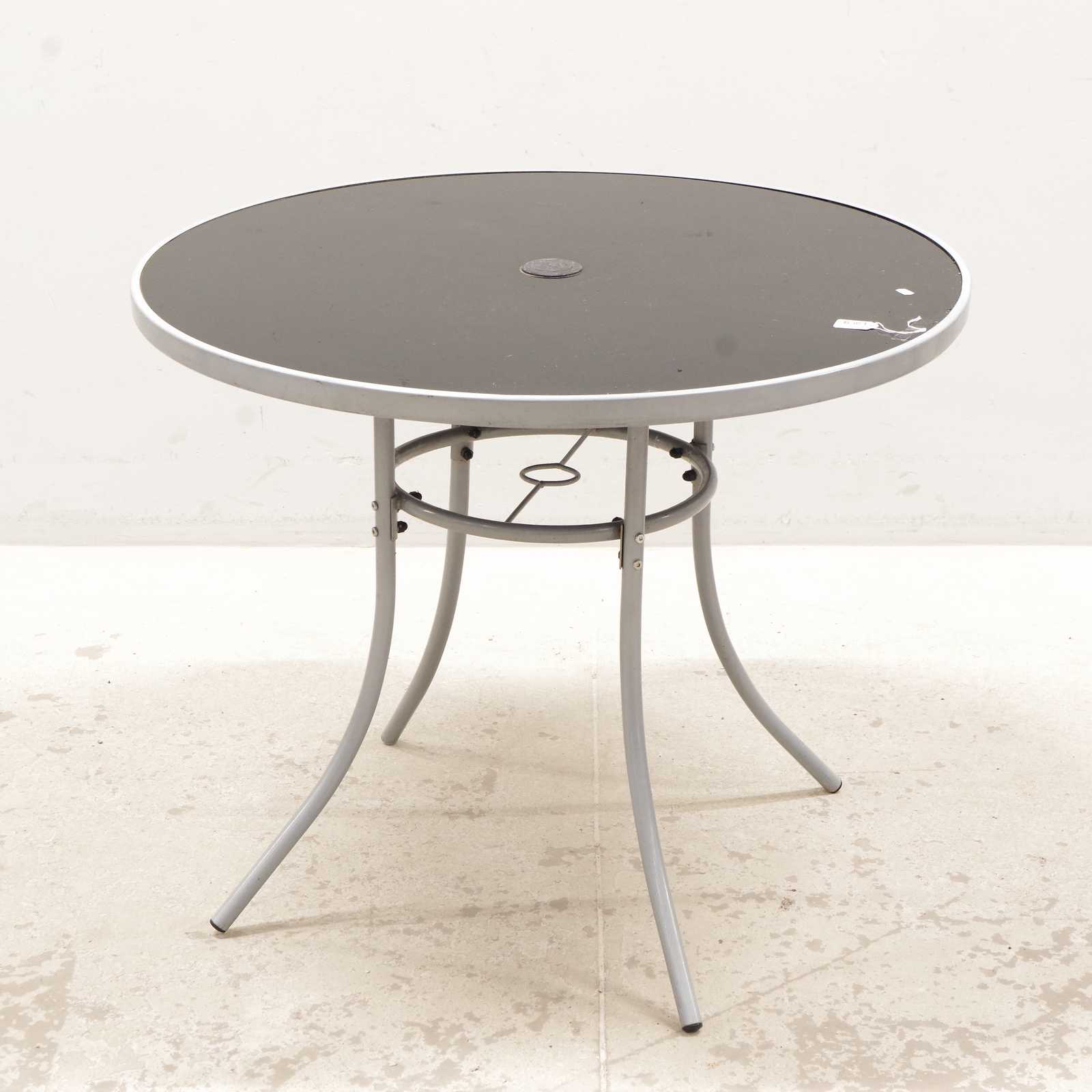 TRÄDGÅRDSGRUPP, stolar 4st & bord, H: 72cm D: 90cm (använt skick)