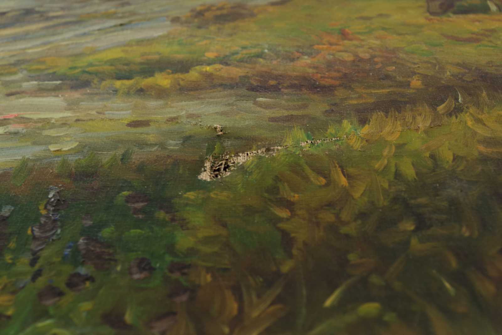 Auktioner Konst & Grafik TAVLA Oidentifierad konstnär, signerad J Rosen, olja på duk, 103x67cm bildytans mått. (skador på duk)