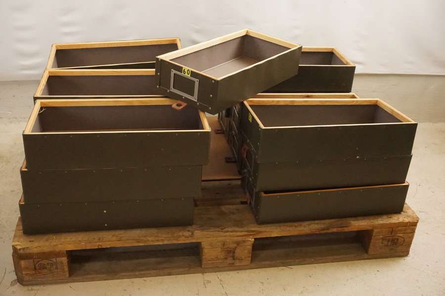 Bilder 18st Militär kartonger med läderflik, gröna. B86