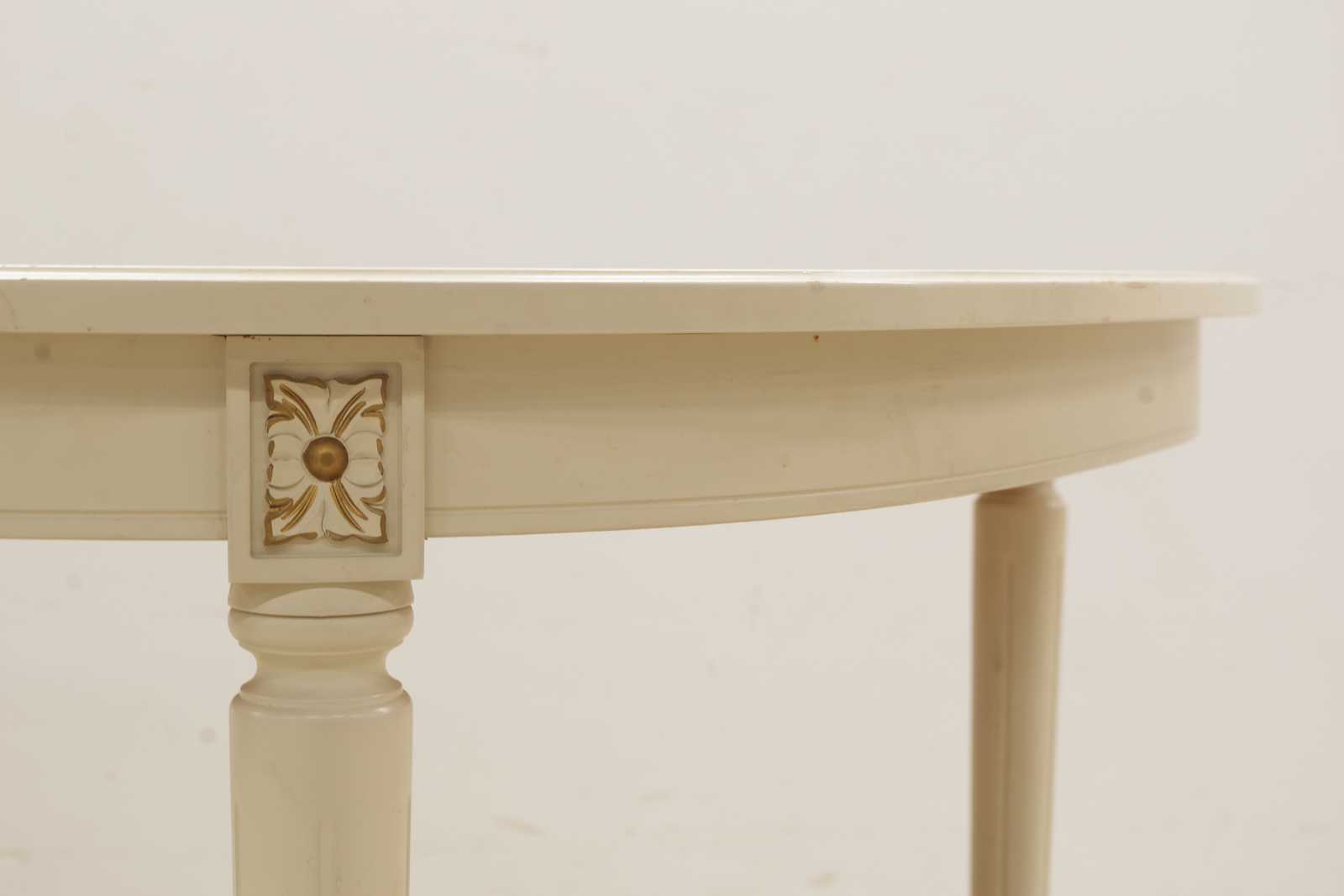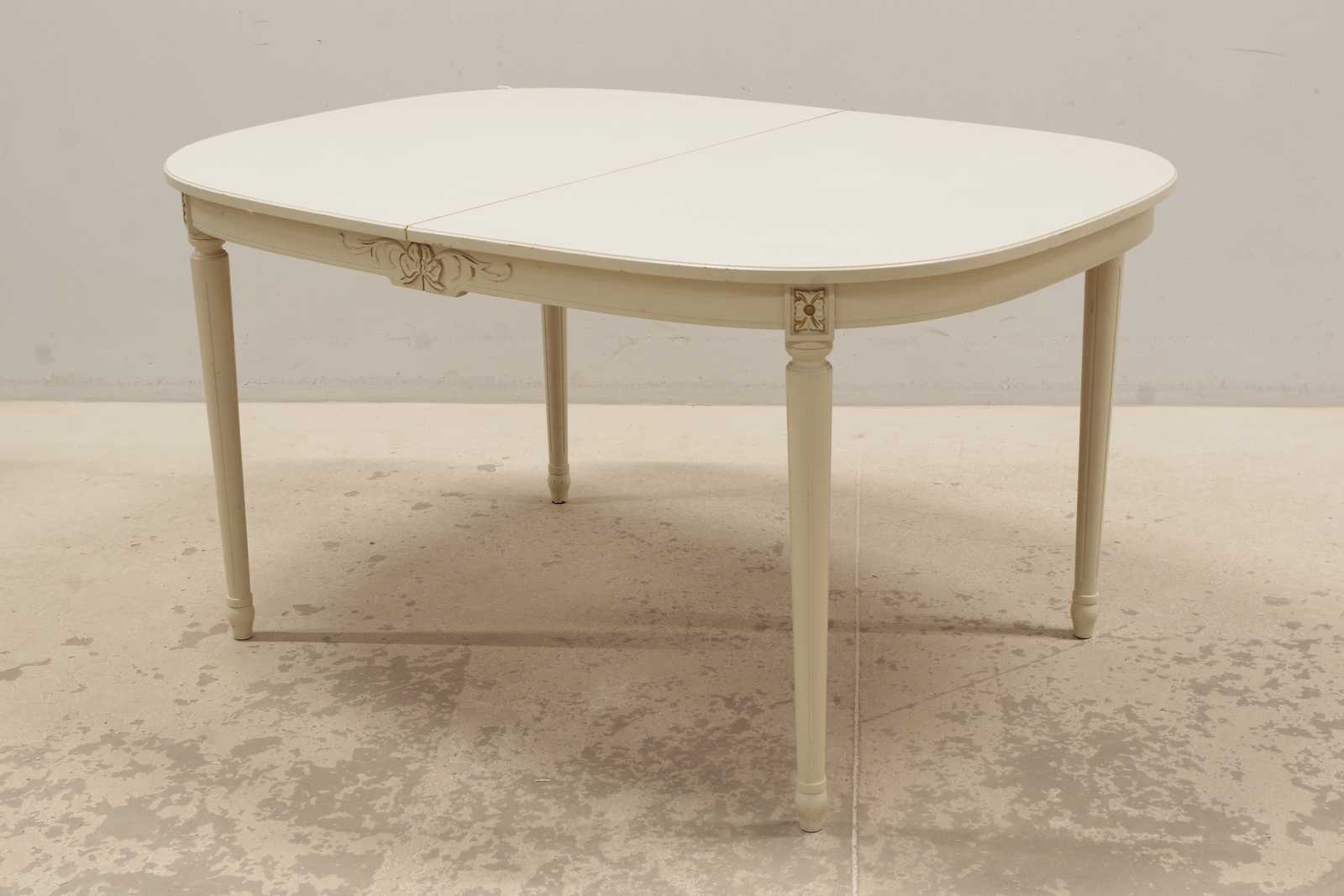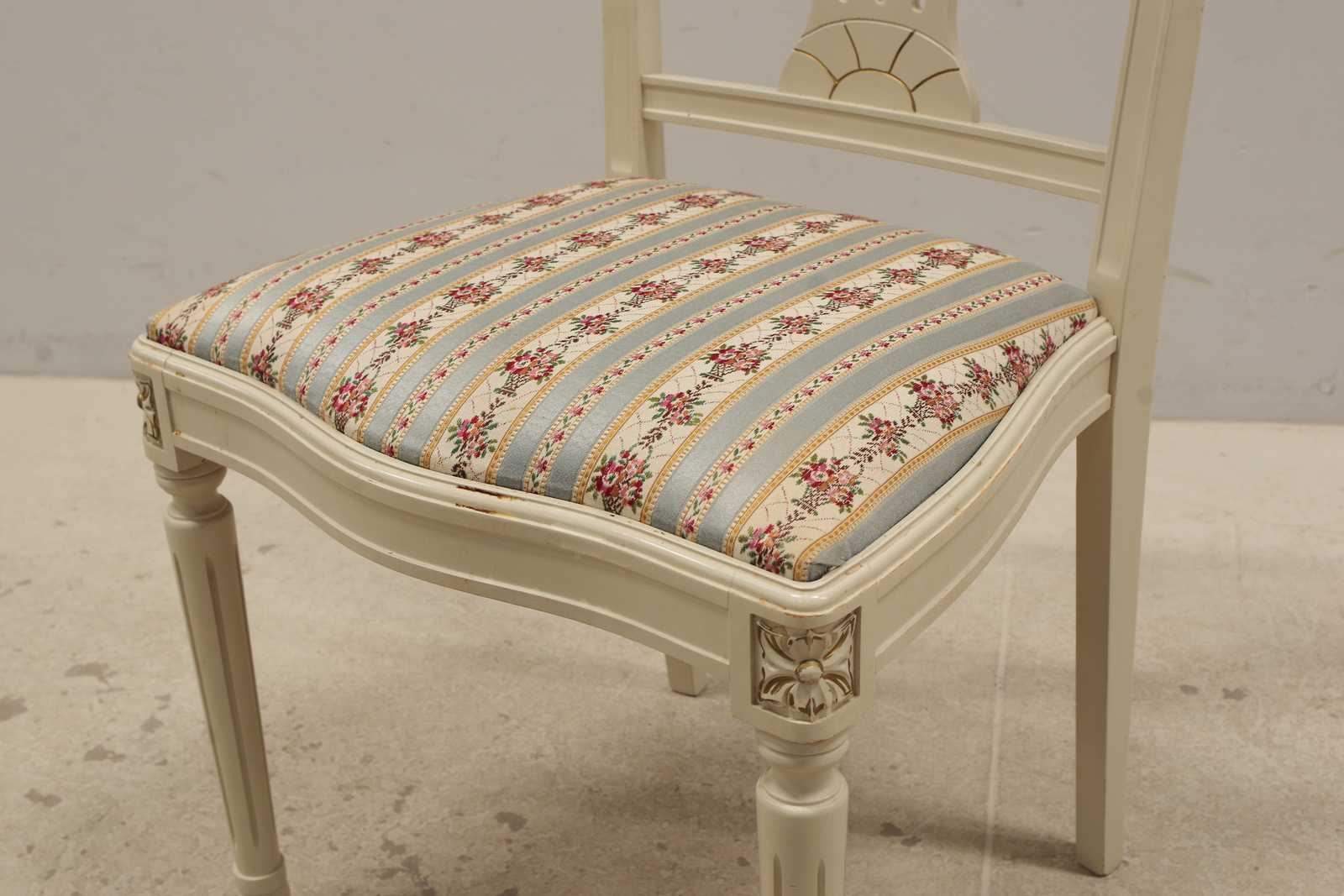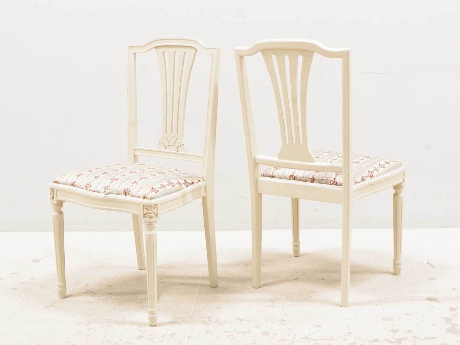 Bilder MATGRUPP, gustaviansk stil, 4st stolar & bord med iläggsskivor, H: 73x 100x 140cm + 2st ilägg: 45cm/st