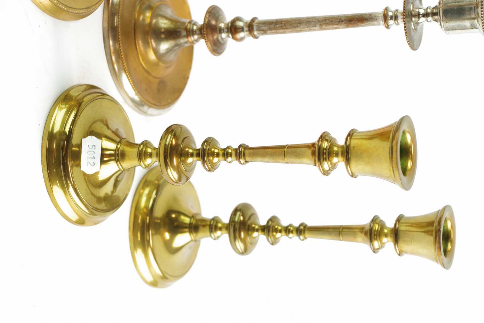 Bilder LJUSSTAKAR mässing Skultuna No 16, 80 och 100 Största H:22,5 cm