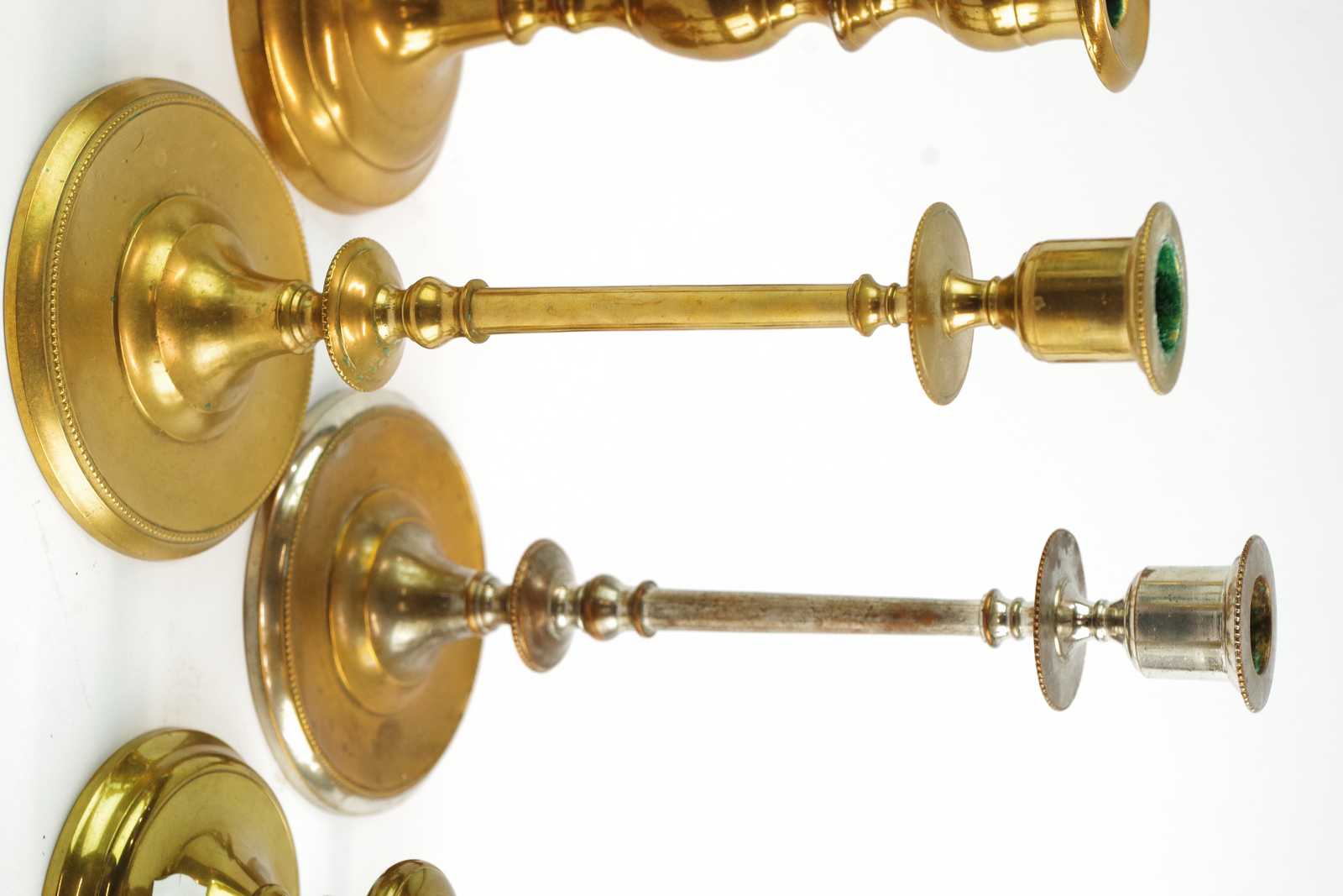 LJUSSTAKAR mässing Skultuna No 16, 80 och 100 Största H:22,5 cm