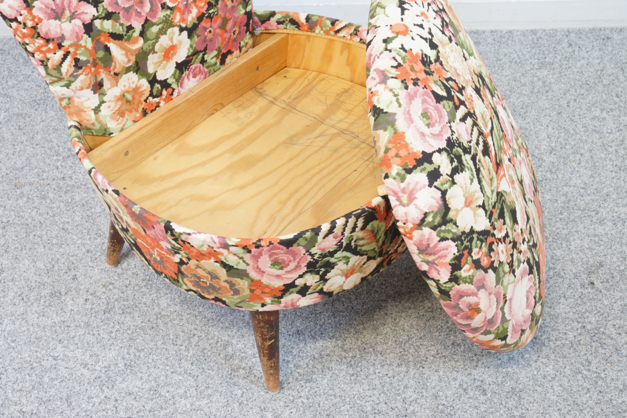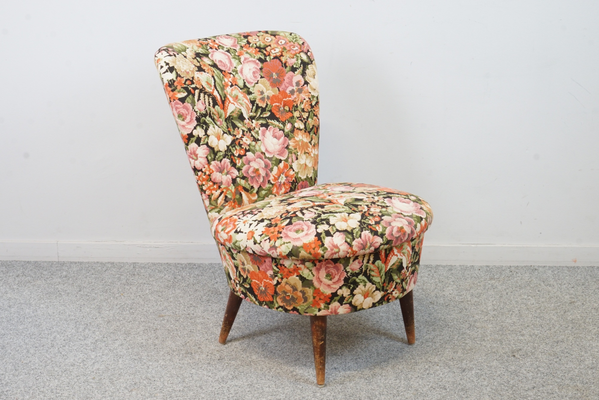 Mått: Höjd 79cm, bredd 53cm, sittdjup 46cm. Slitage på fötterna.