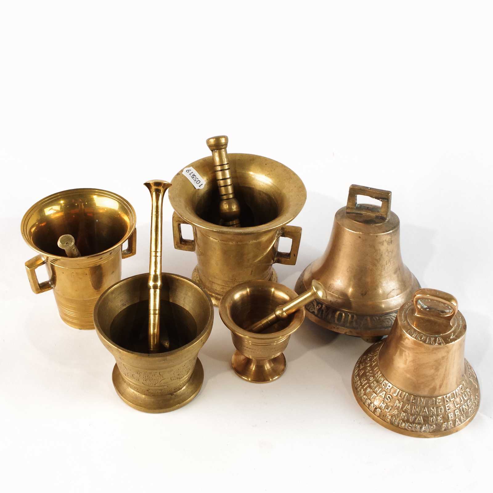 parti MORTLAR och SKEPPKLOCKOR, mässing/malm. H: 9,5cm högsta