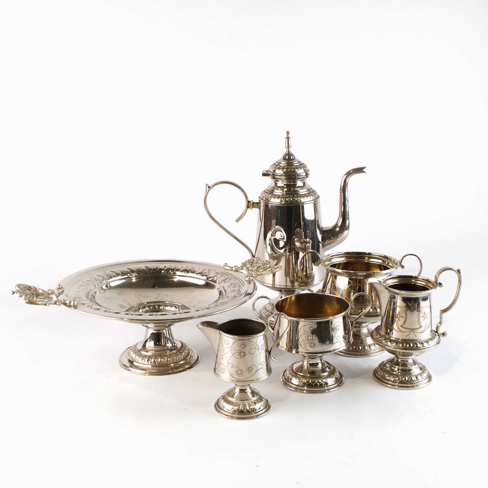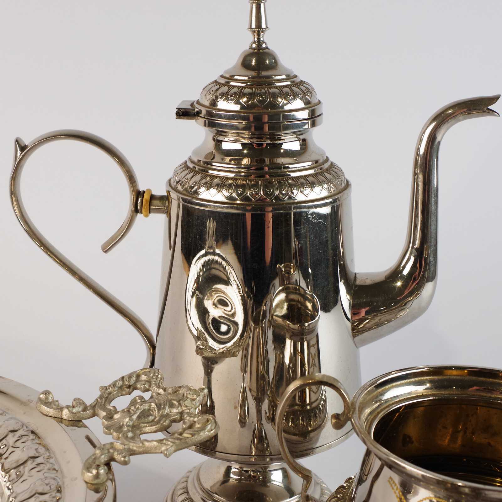 KAFFESET äldre, vitmetall. H:31cm.