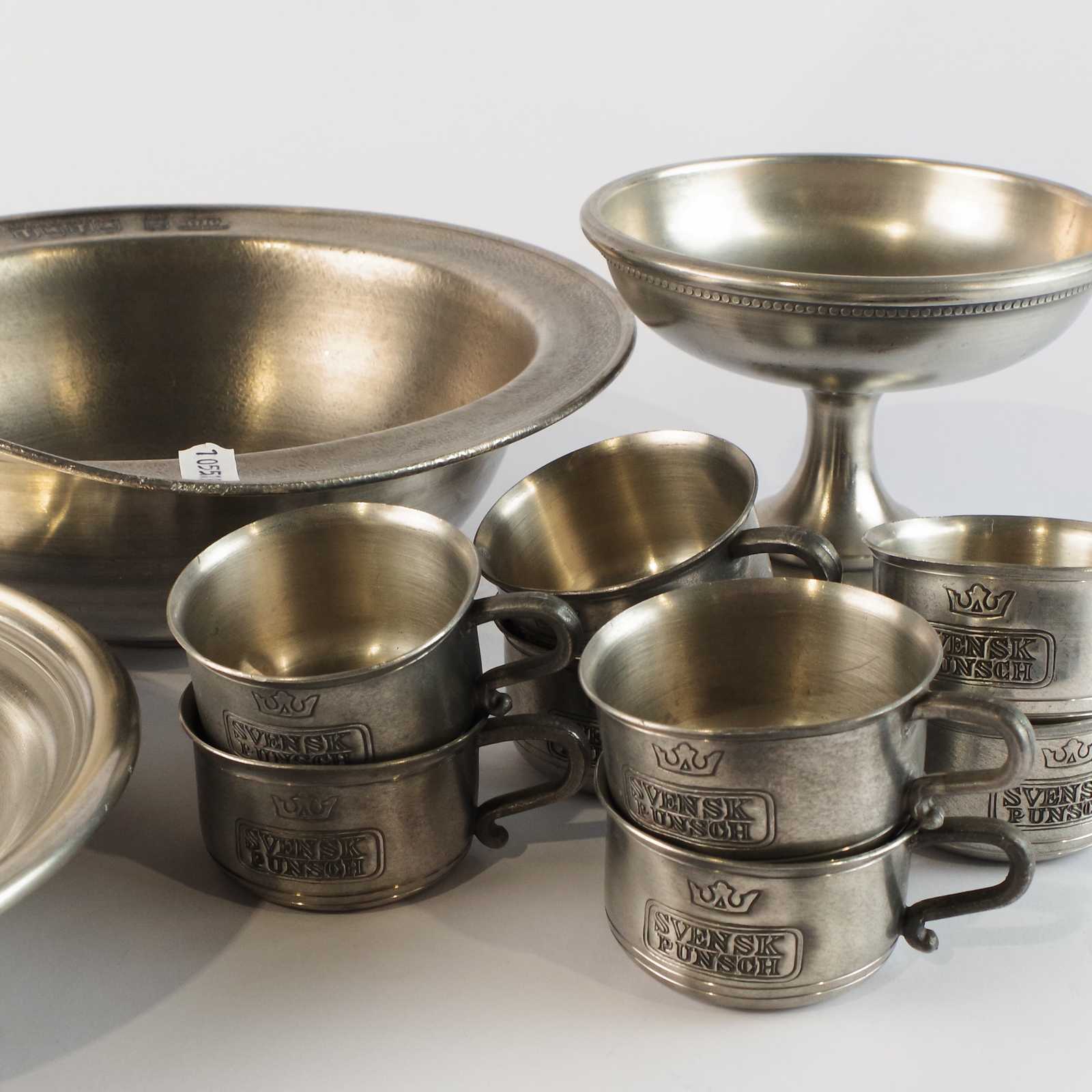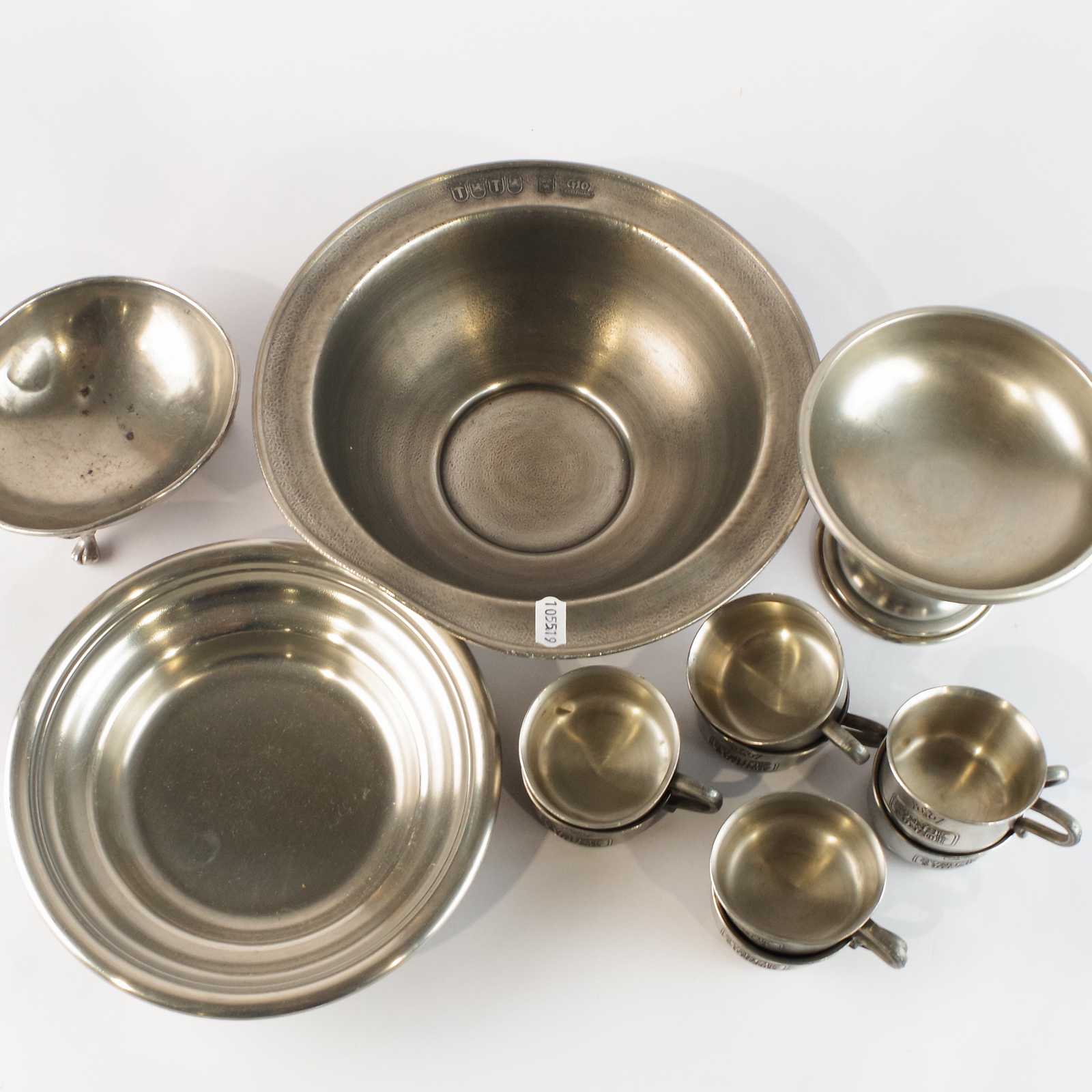 parti TENN, skålar och koppar, bla Scandia tenn.