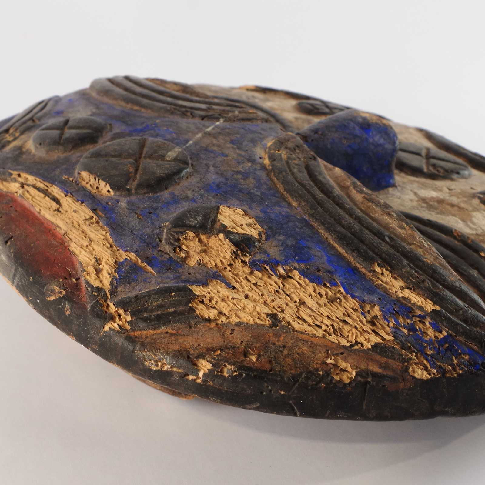 TRÄMASK, antik, maskstungen. L: ca 32cm.