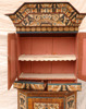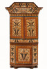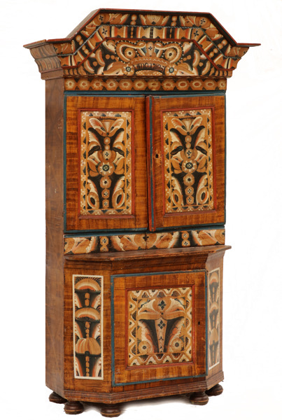 Originalmålning. Upptill med dubbla dörrar och två lådor. Nedtill med en dörr. Löstagbart krön.