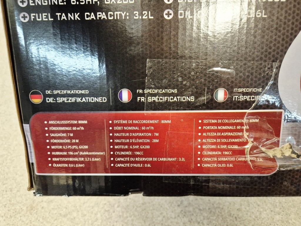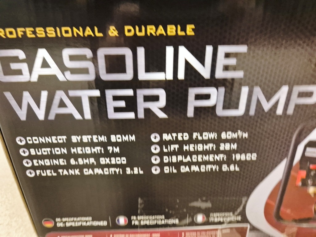 Bensindriven vattenpump - NYFlödeskapacitet: 30 m³/h Anslutning: 50 mmLyfthöjd: Upp till 30 meter Sugförmåga: Upp till 7 meter