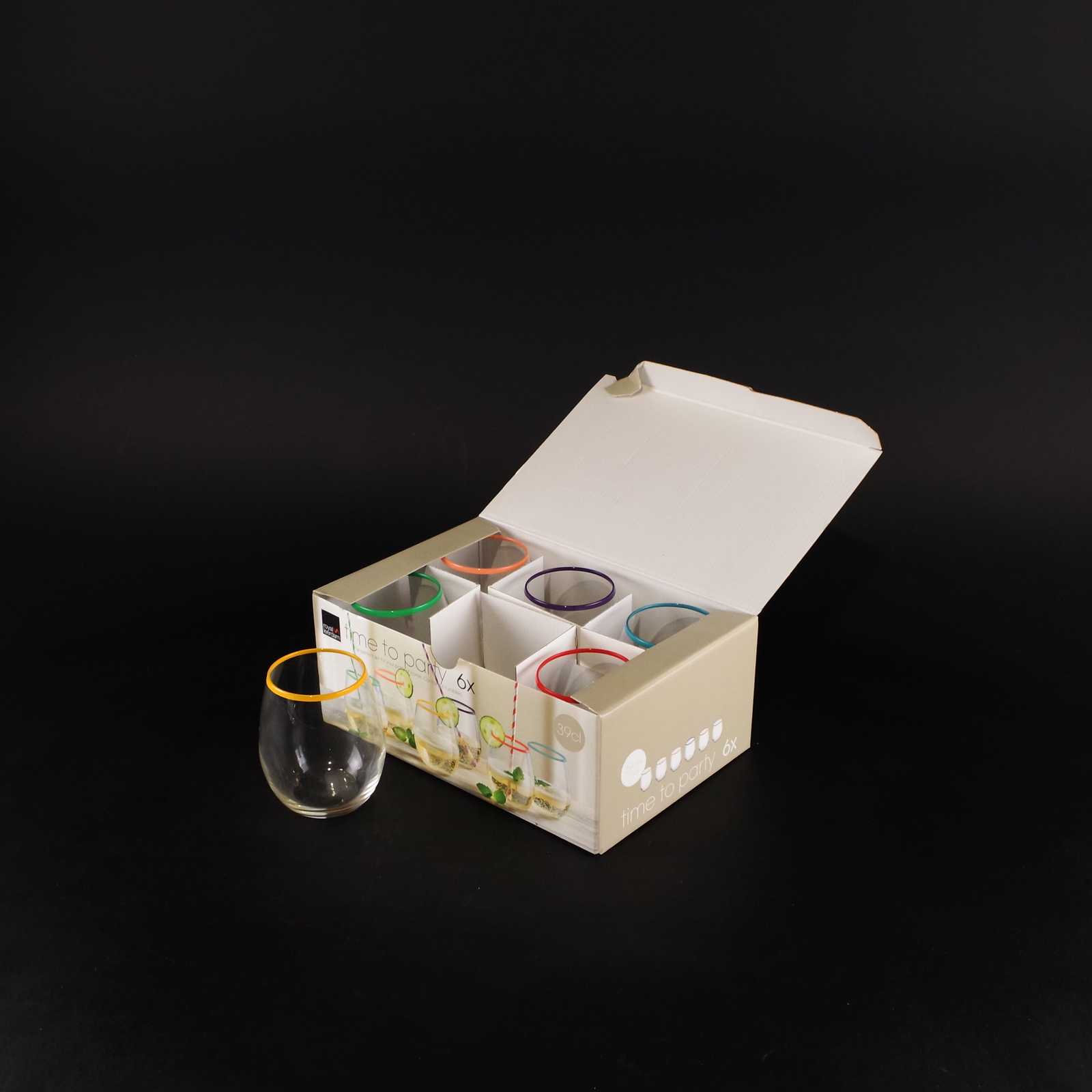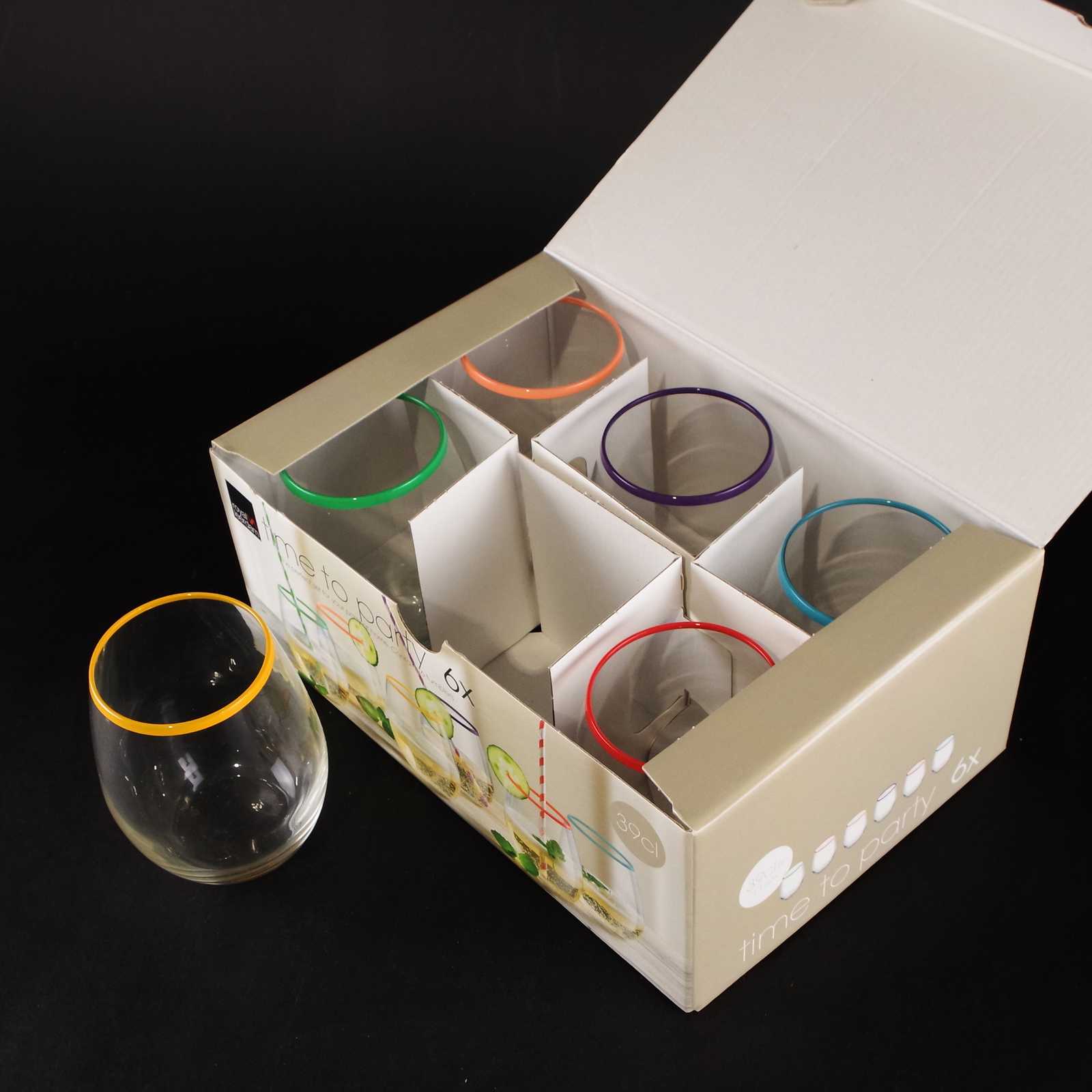 GLAS 6st olikfärgad kant. H:10cm D:6,5cm.