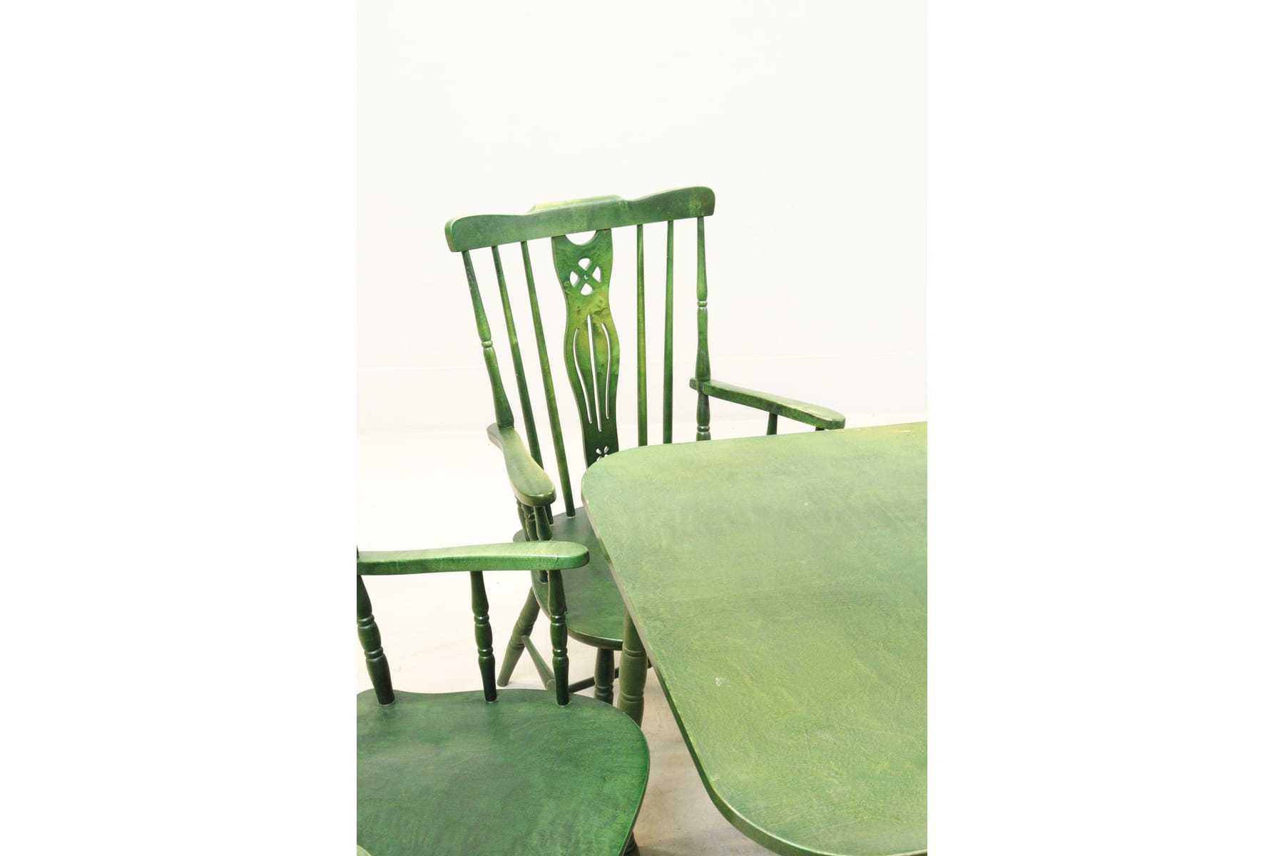 Bilder Matgrupp, bord med 5 karrmstolar, grönbetsat, Windsormodell