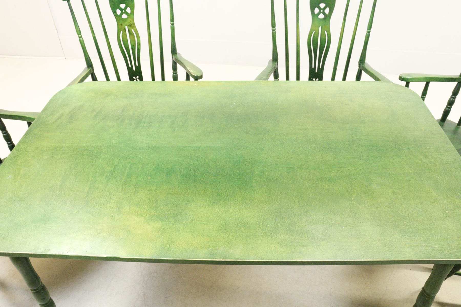 Matgrupp, bord med 5 karrmstolar, grönbetsat, Windsormodell