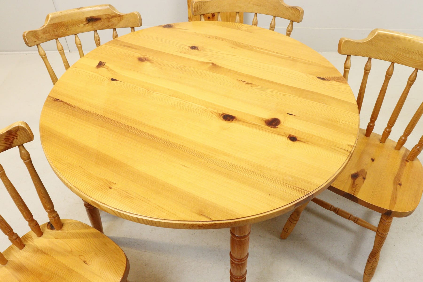 Matgrupp, furu, bord med 4 stolar och iläggskiva