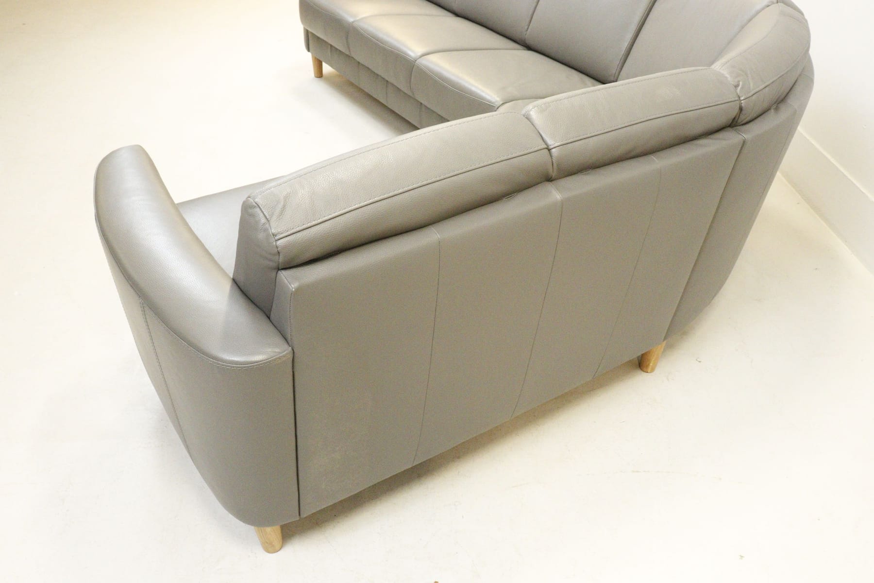 Hörnsoffa, grått skinn