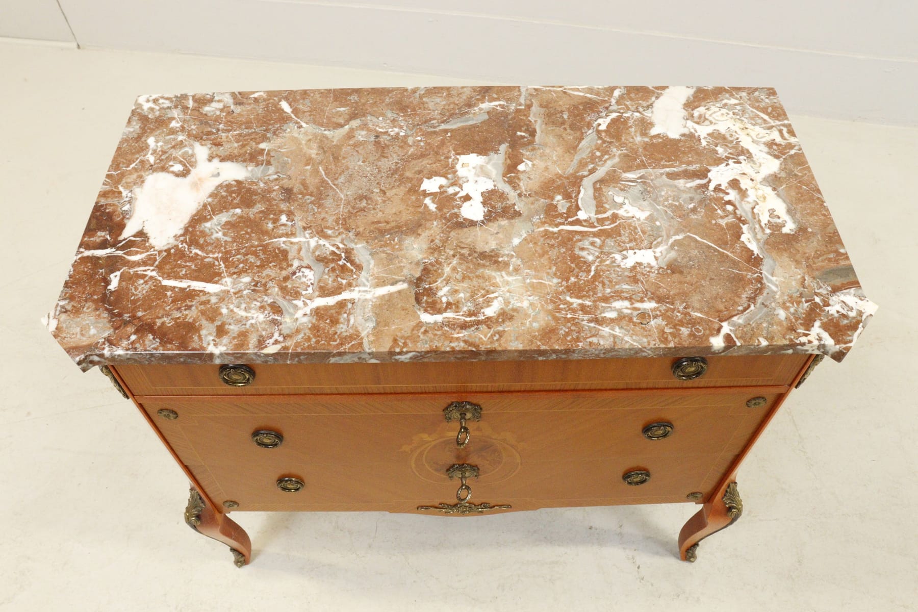 Auktioner Övrigt Stilbyrå med marmorskiva, 3-lådig