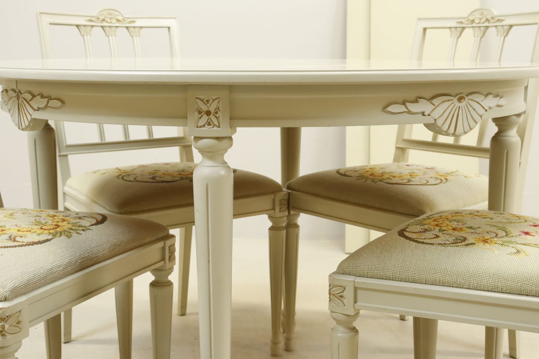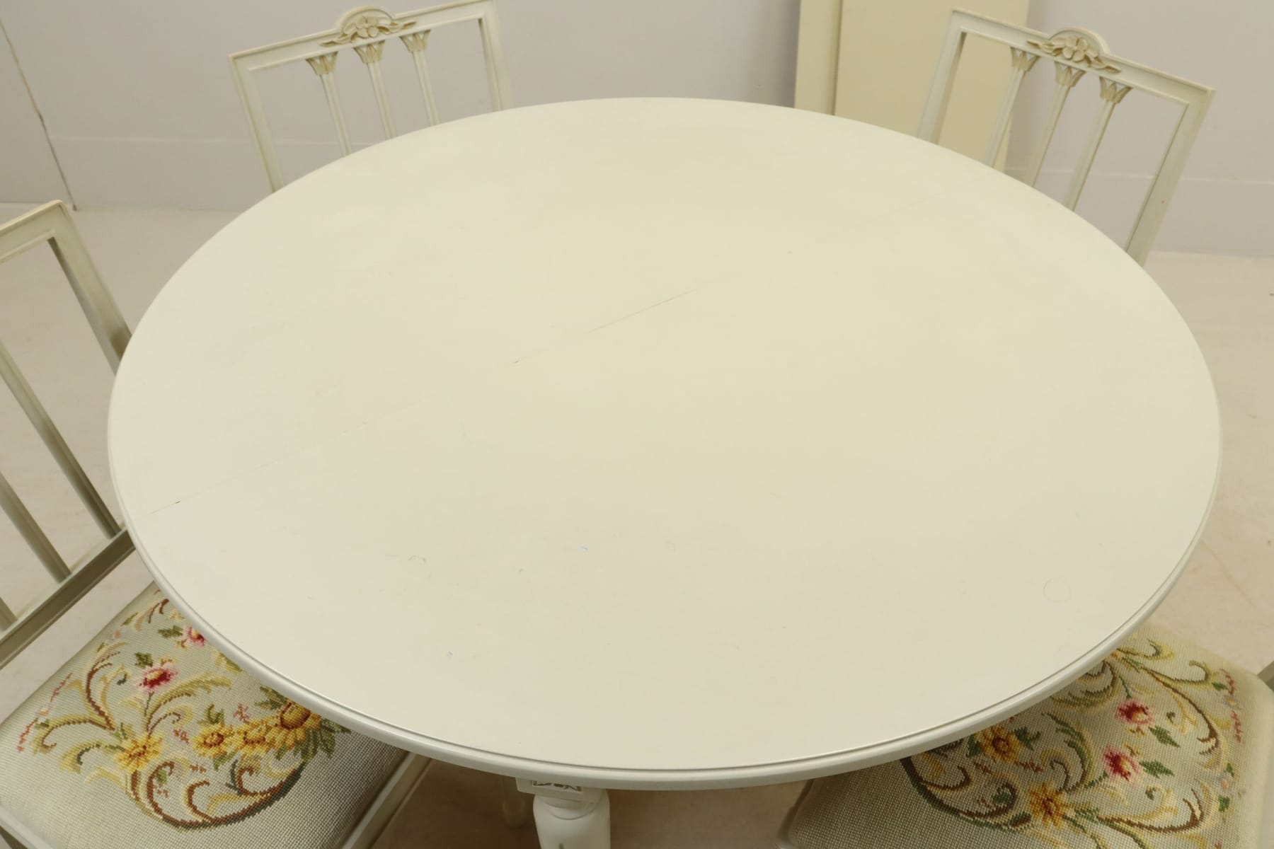 Matgrupp, bord med 4 stolar och 2 iläggsskivor, gustaviansk stil