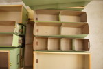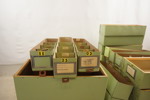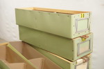 Militär kartonger med läderflik. B87