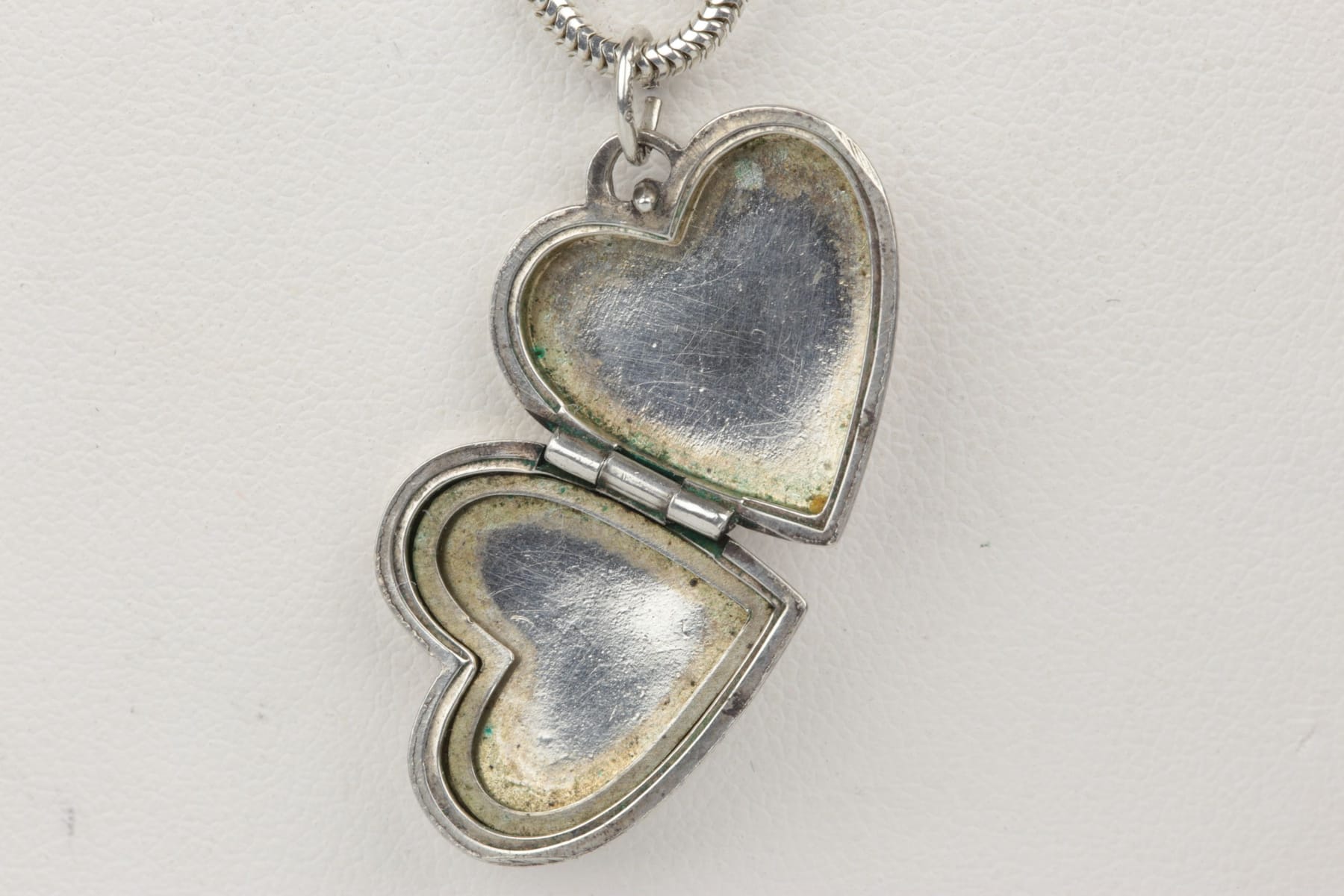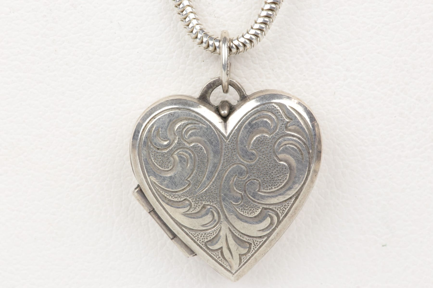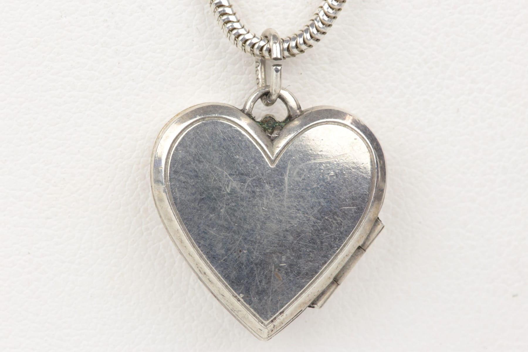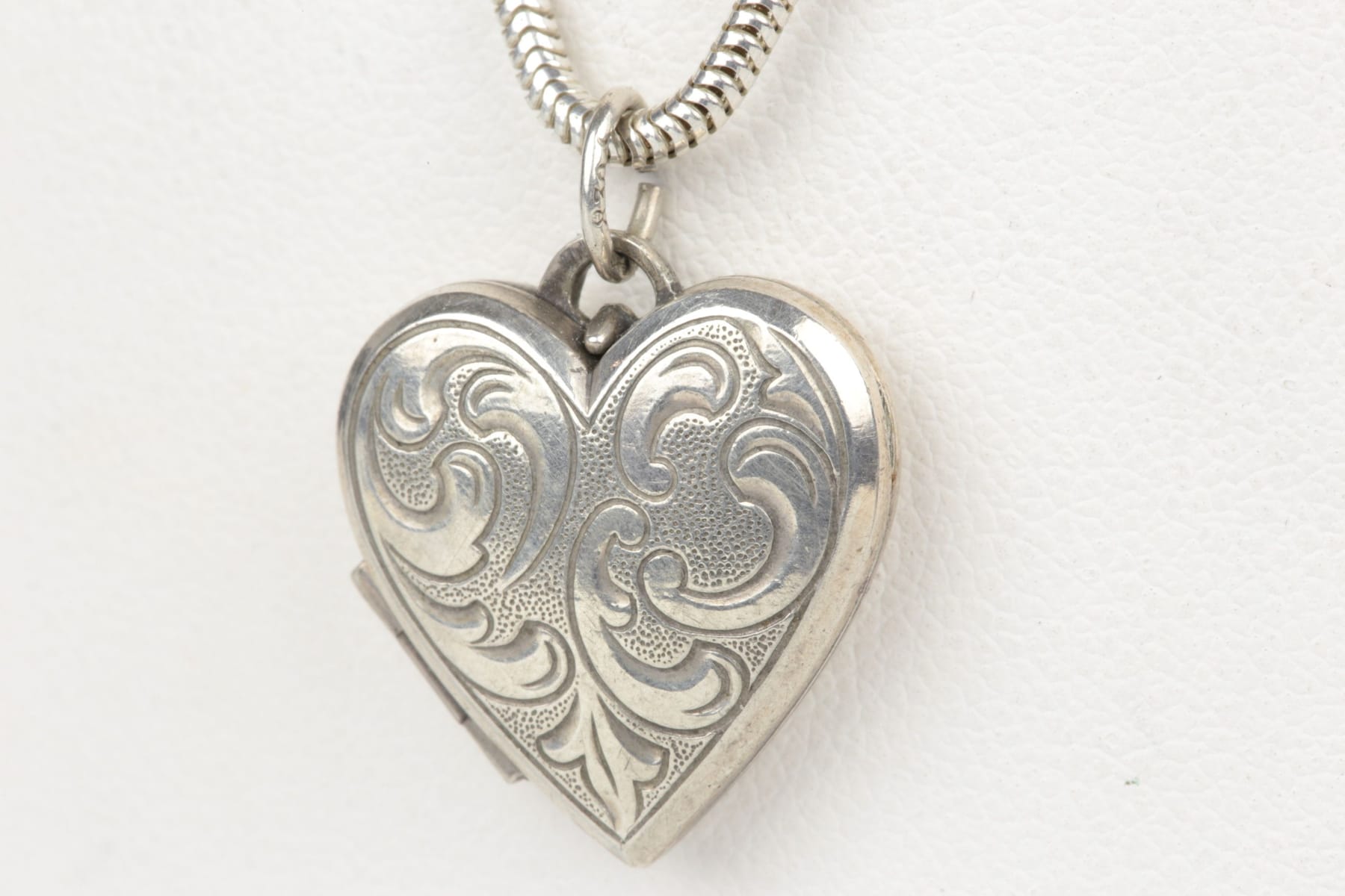 Bilder HÄNGE, fotogömma, hjärta, samt HALSKEDJA, ormlänk, silver