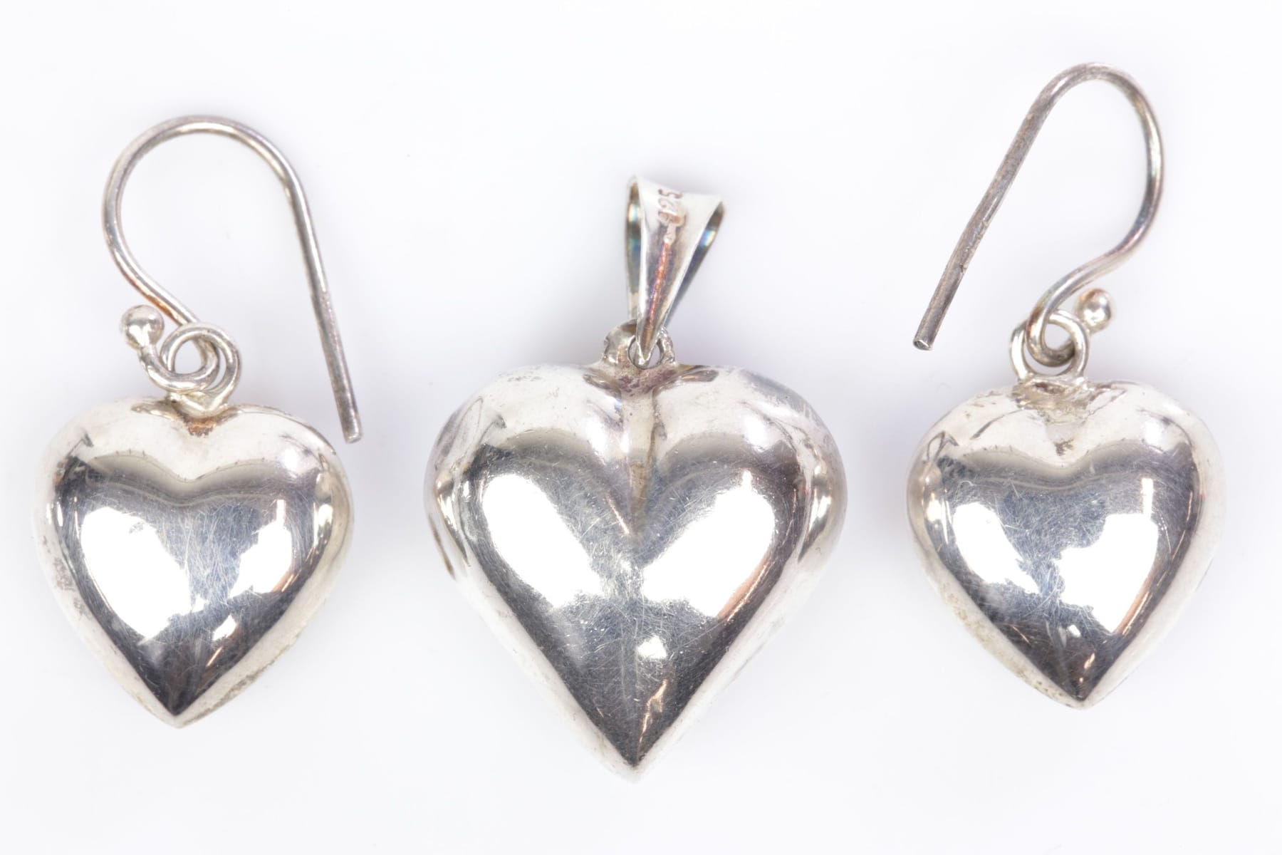 HÄNGE samt ÖRHÄNGEN, ett par, hjärtan, silver