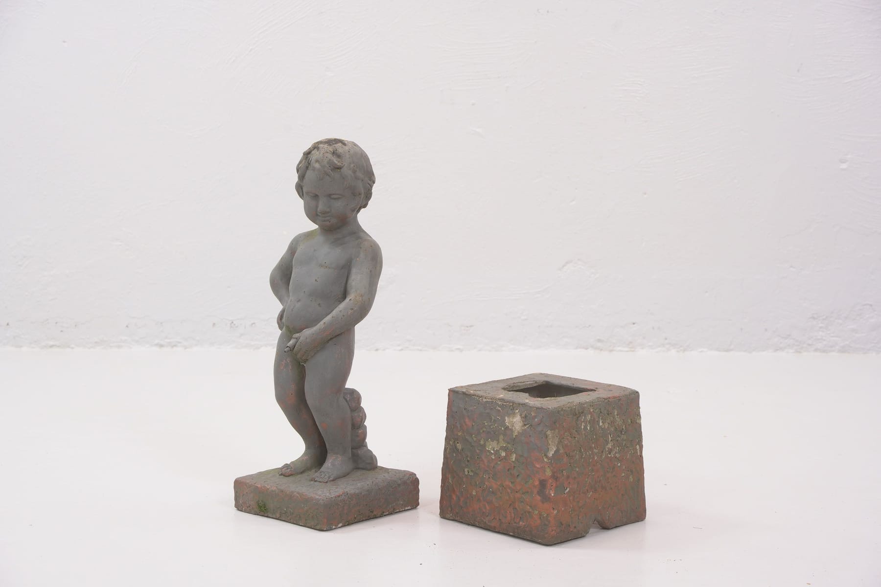 Bilder TRÄDGÅRDSSKULPTUR / FONTÄN efter "Manneken pis", gjuten massa, 1900-tal