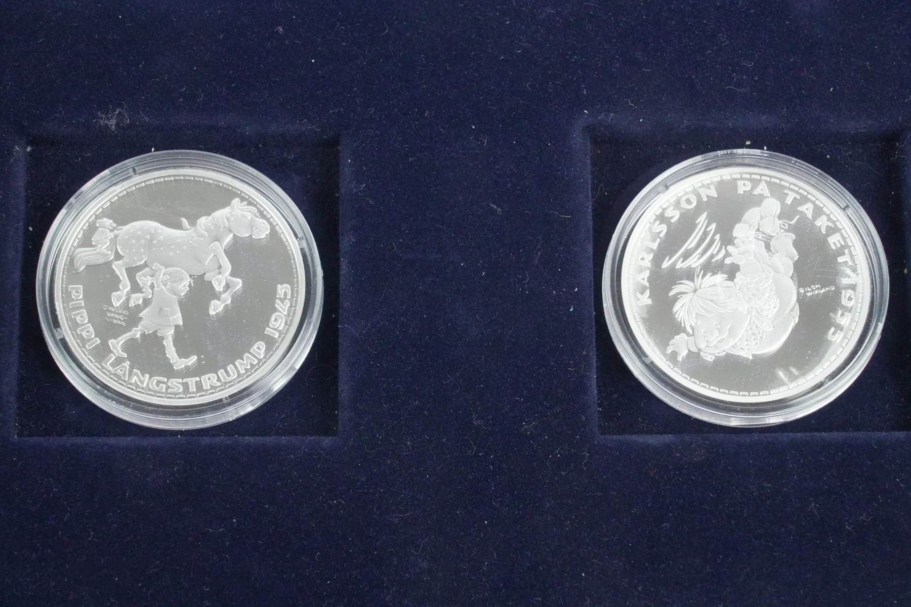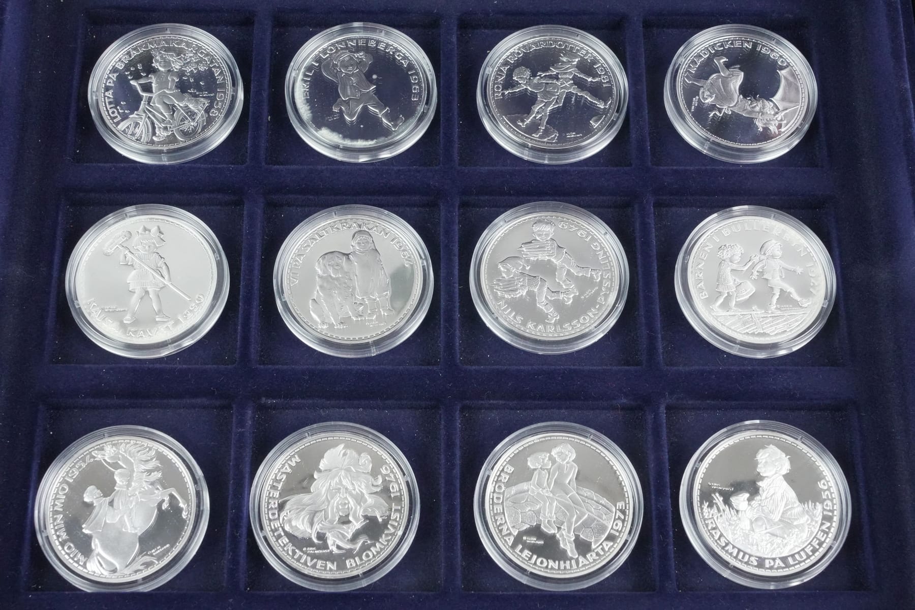 Bilder SAMLARMEDALJER, 14 st, silver, 999/1000, i schatull, "Astrid Lindgren 1907-2002"