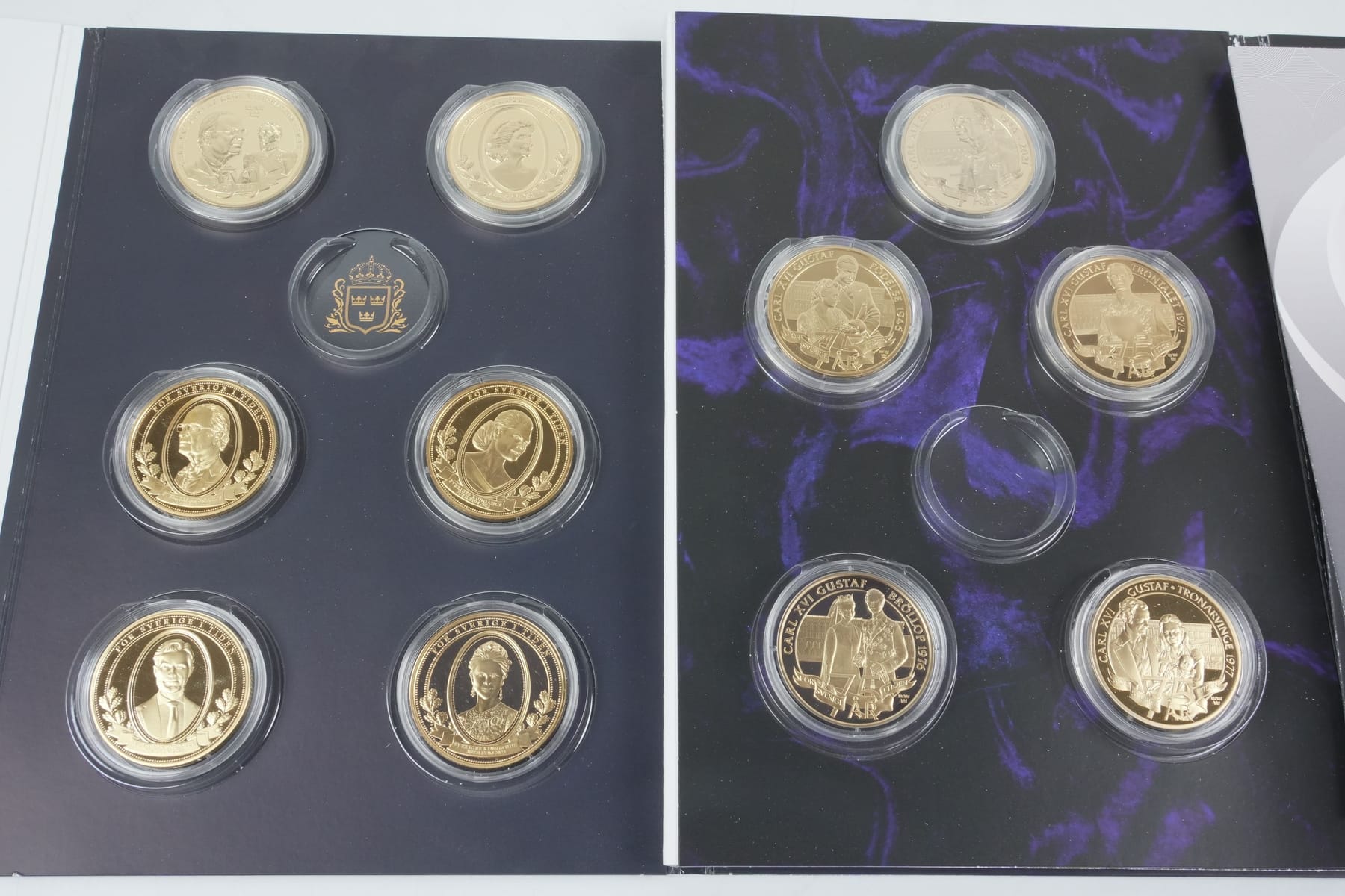 Bilder PARTI med samlarmynt, bl.a. kassett "Sveriges kungahus, jubileum 2023"