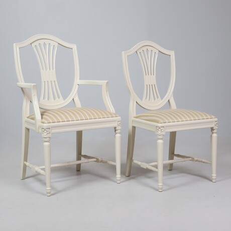 Bilder Matgrupp Gustaviansk stil, bord 140 X 100 + 2 st ilägg a46 H=74 + 6 stolar och 2 karmstolar