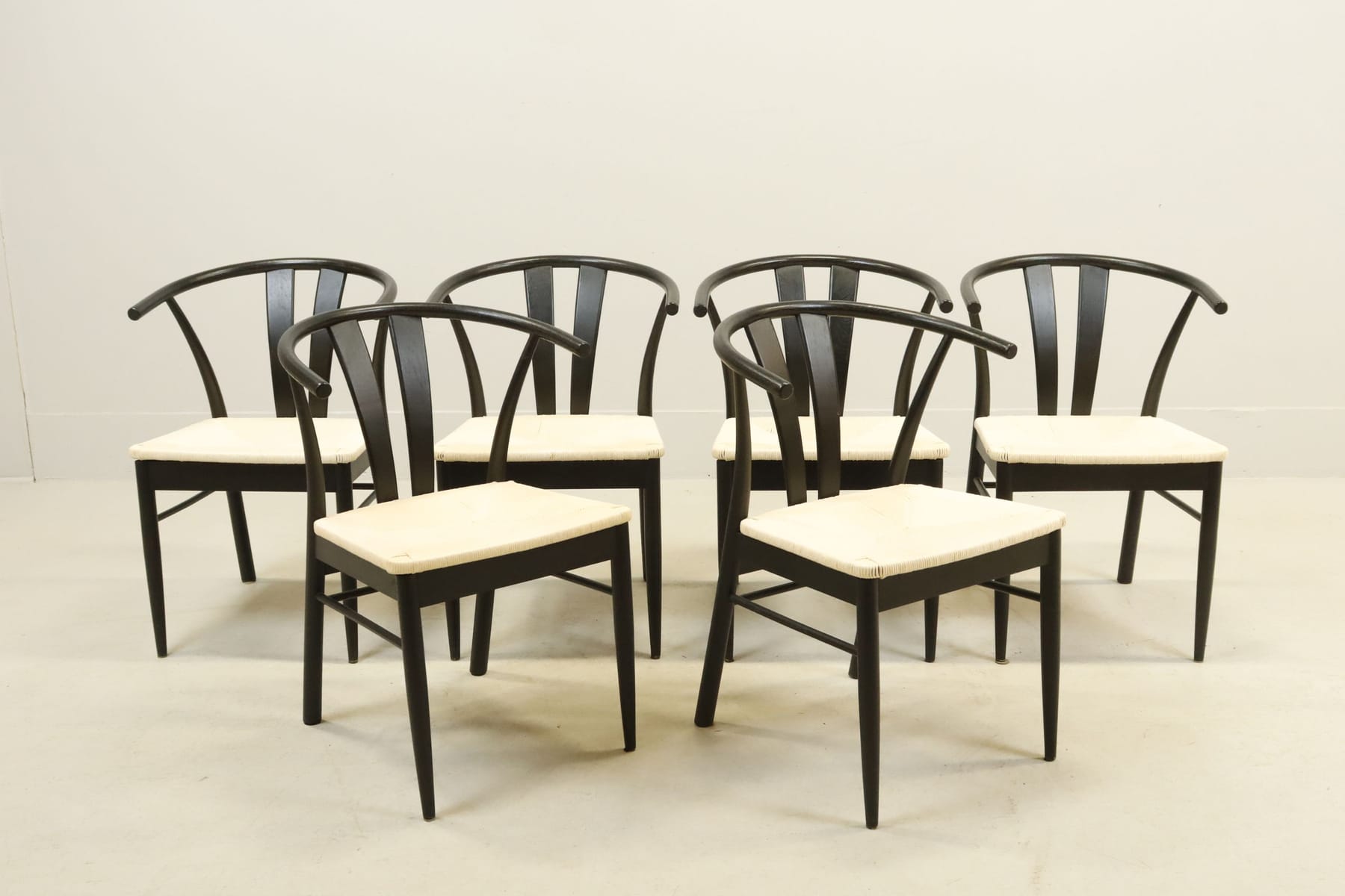 Matstolar, 6st, Schiba, Nordic Furniture Group, svartlackerad ek med flätad sits