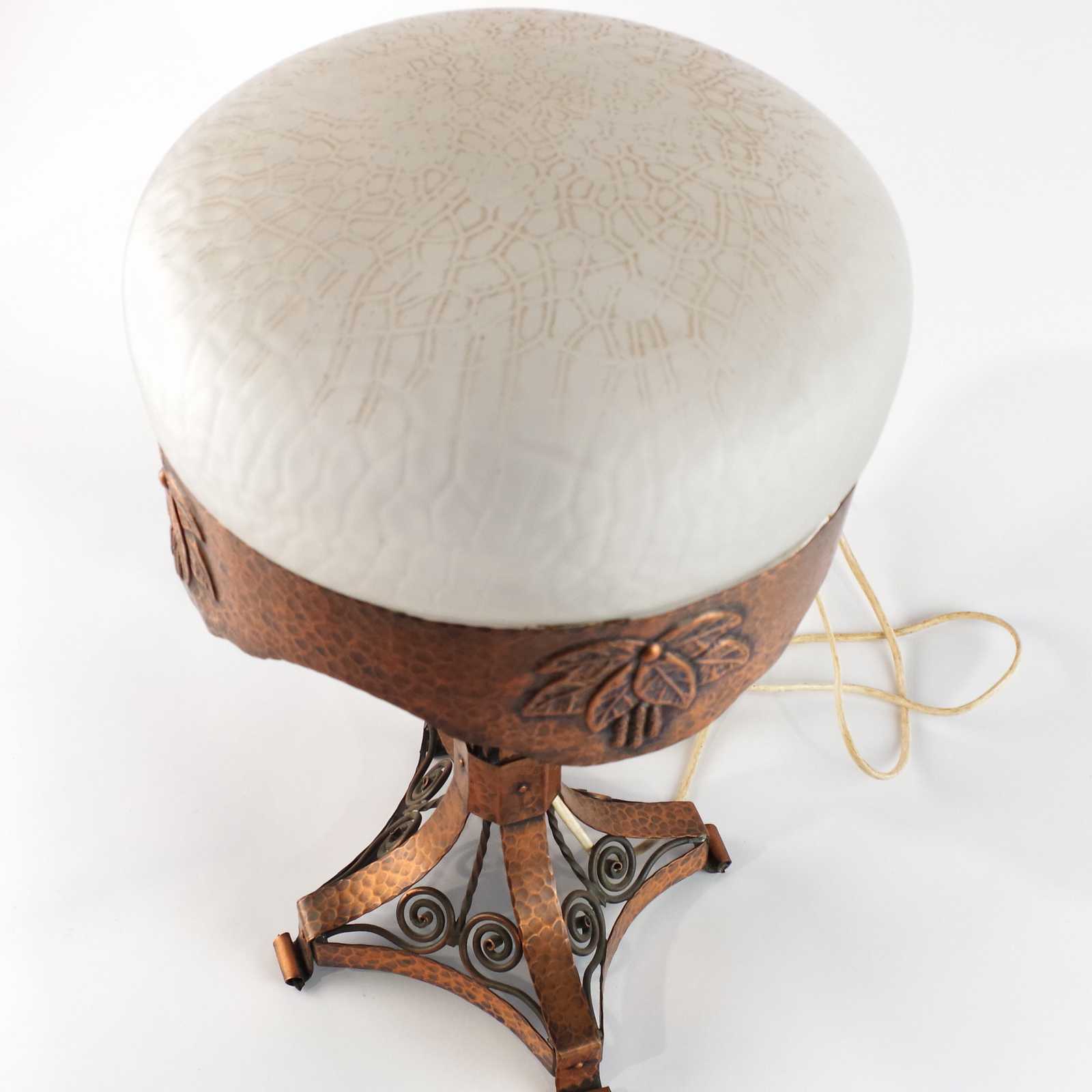 Bilder STRINDBERGSBORDSLAMPA tidigt 1900 tal, koppar/glas. H:40cm D:24cm.