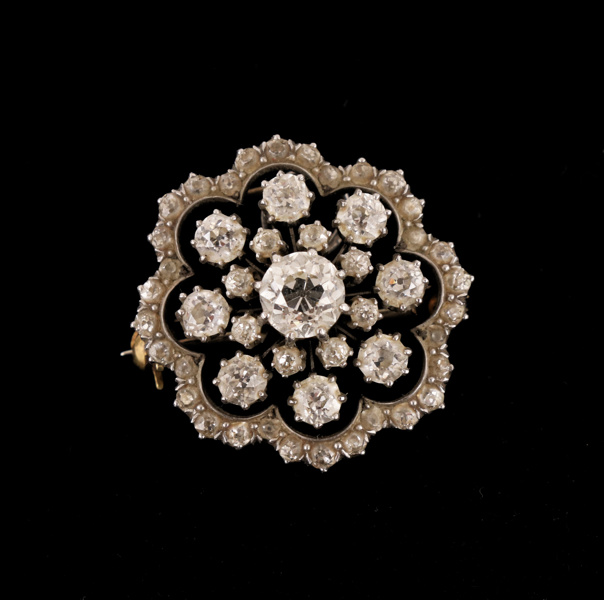 Med briljantslipade diamanter (varav den största med en diameter på ca.6mm).