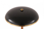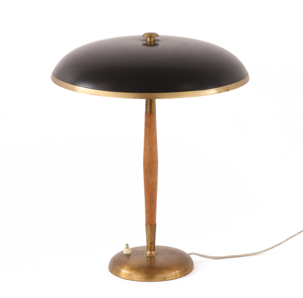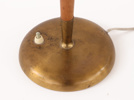 Mässing och teak. Modell B8453. Delvis svartlackad skärm.