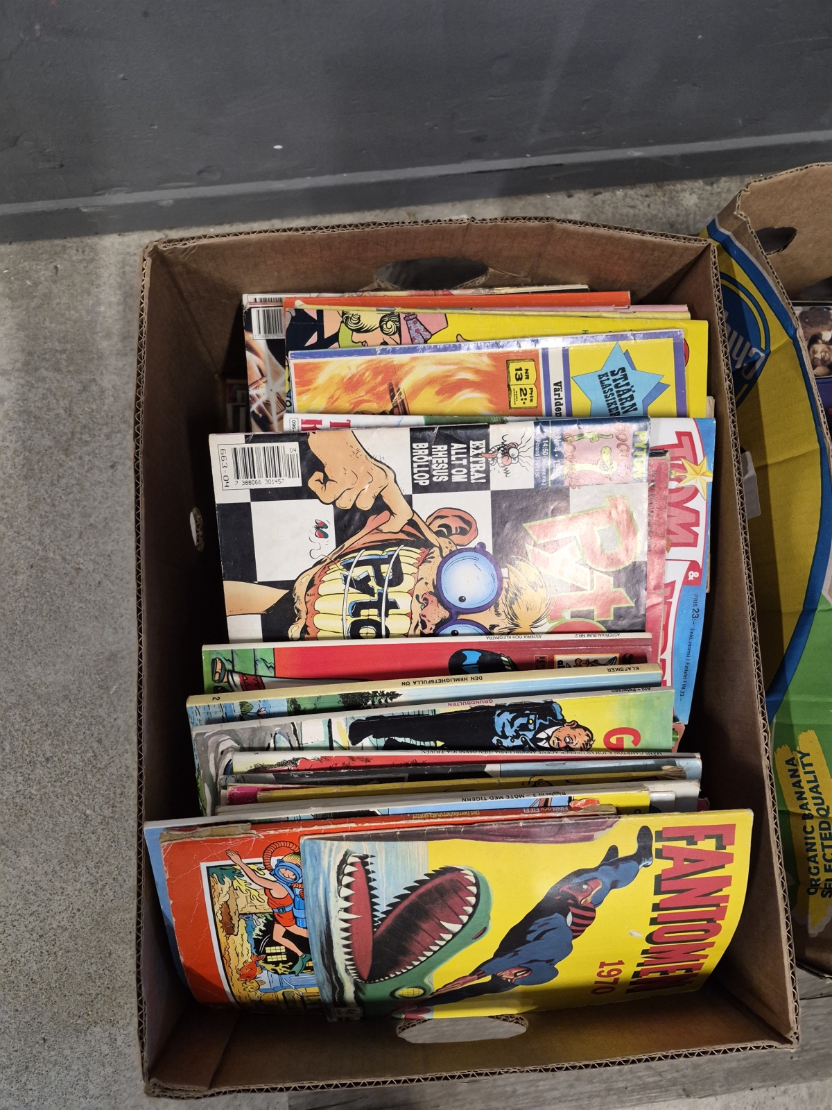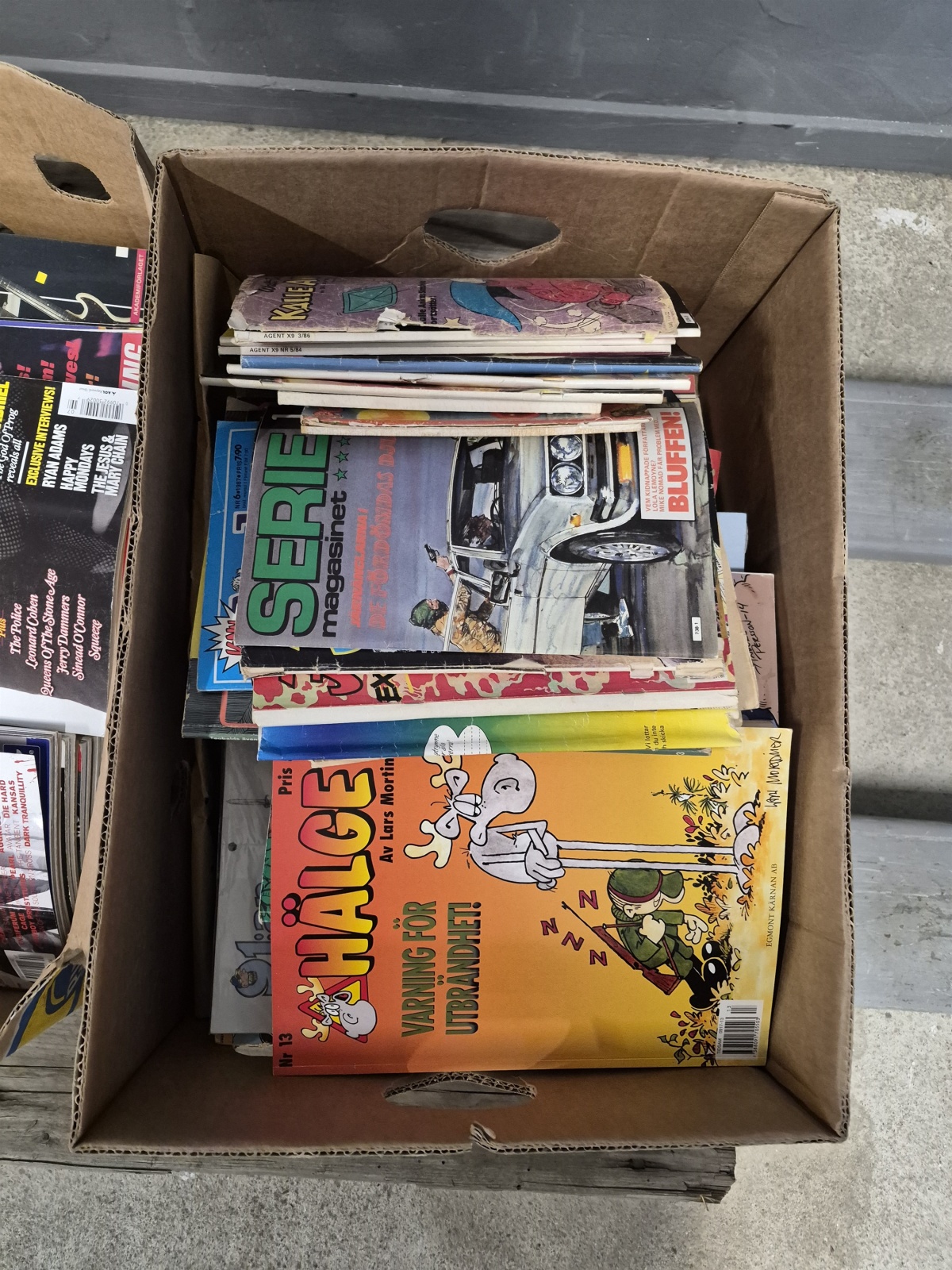Parti serietidningar och Uncut, ej genomgånget 3 lådor