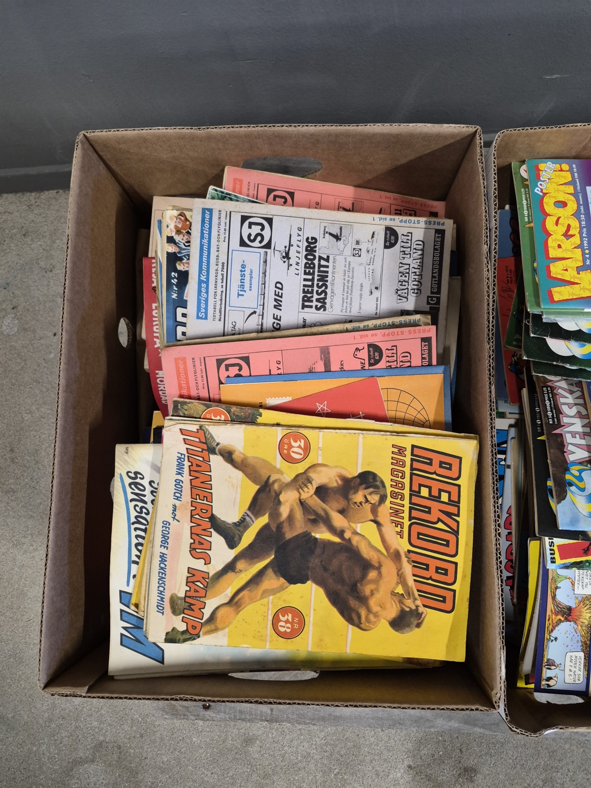 Parti serietidningar, Sveriges Kommunikationer och Serierevy, ej genomgånget 3 lådor