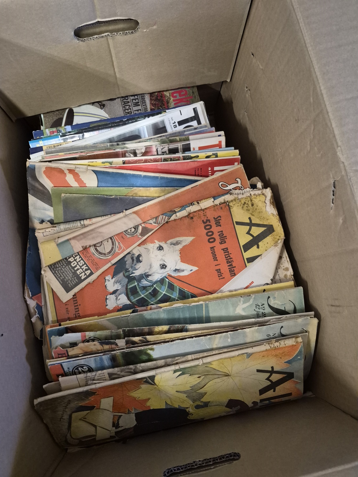 Parti tidskrifter bl.a Teknik för alla och Allers, ej genomgånget 2 lådor