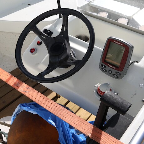 Bilder Styrepulpet Ryds 435 DL årsmodell 1997 med motor Johnsson 20hk och 80 släp ULGU-METALL BT 600ES Årsmodell 1989, OMK 038, besiktigat tom 3/2027. Medföljer bl.a. Ekolod, Ankare, fendrar, fiskeredskap, bojor, linor mm. Båten är förberedd för El-Trollingmotor. Startbatteri finns.