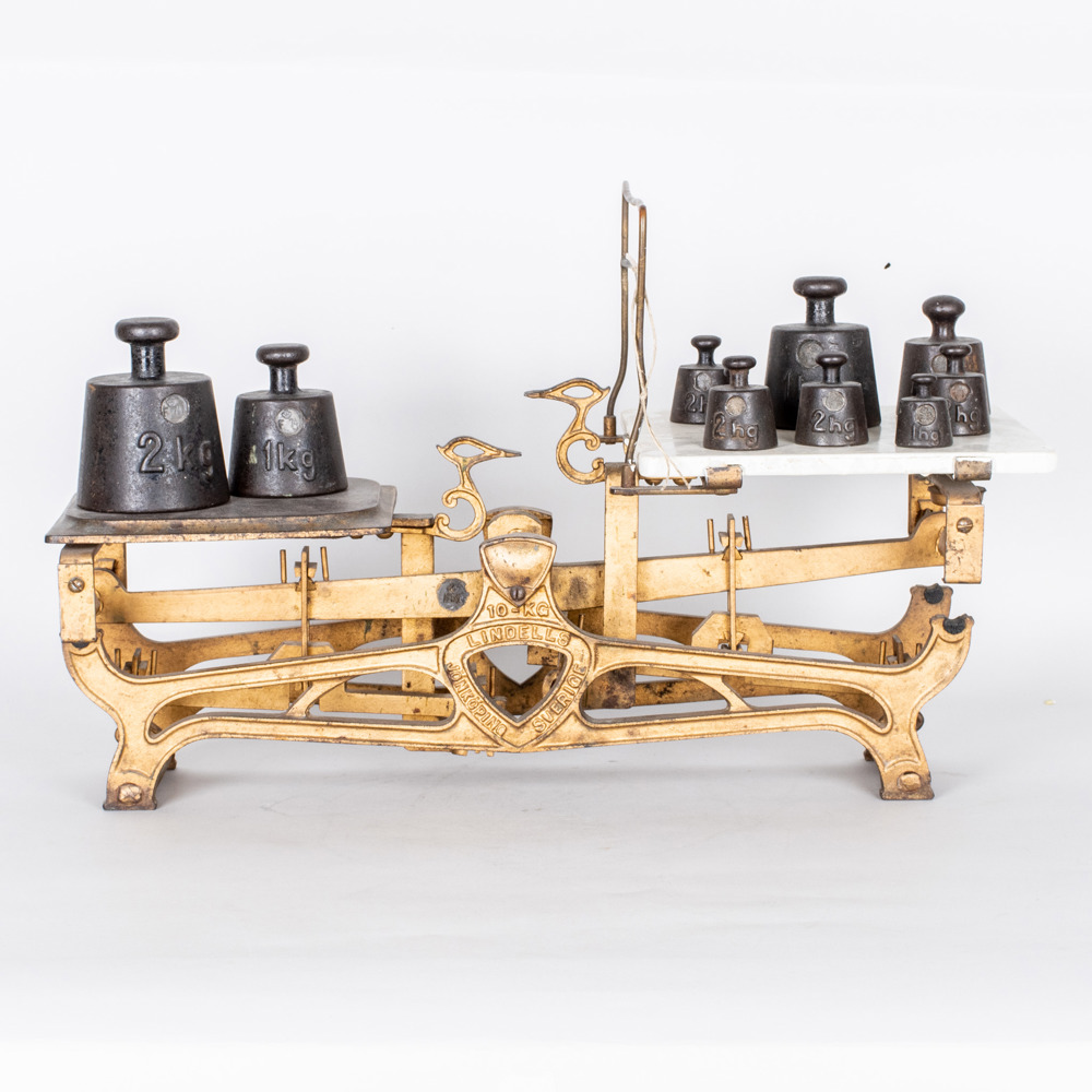 Bronserat gjutjärn, med vikter, vågens längd 50 cm