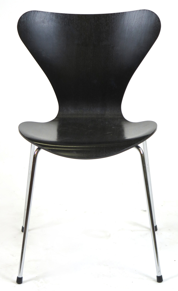 Bilder Jacobsen, Arne för Fritz Hansen, stol, svartlackerat böjträ på stålben, modell FH 3107 'Sjuan', design 1955, detta exemplar från 2005, bruksslitage